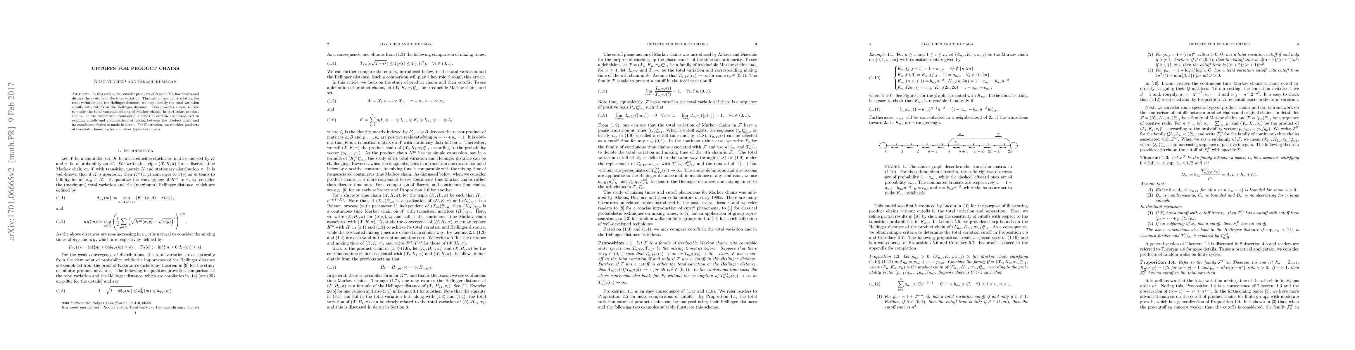 This paper investigates cutoffs in the total variation for product chains of ergodic Markov chains, establishing a new inequality linking total variation and the Hellinger distance. It introduces criteria to examine these cutoffs and compares mixing between product chains and their coordinate chains, using examples like two-state chains and cycles for illustration.