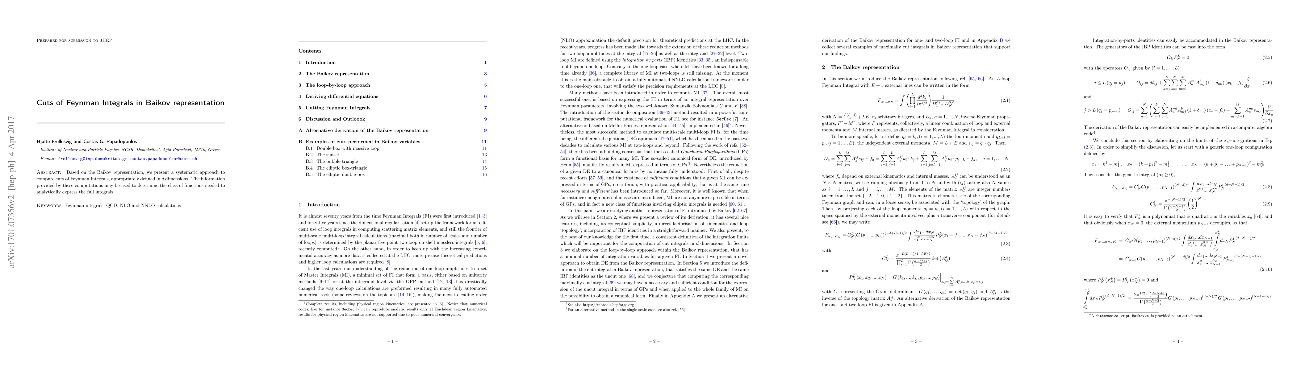 This paper introduces a systematic method to compute cuts of Feynman integrals using the Baikov representation, which helps identify the necessary classes of functions for their analytical expression in $d$ dimensions. The results contribute to a better understanding of the structure of these integrals.