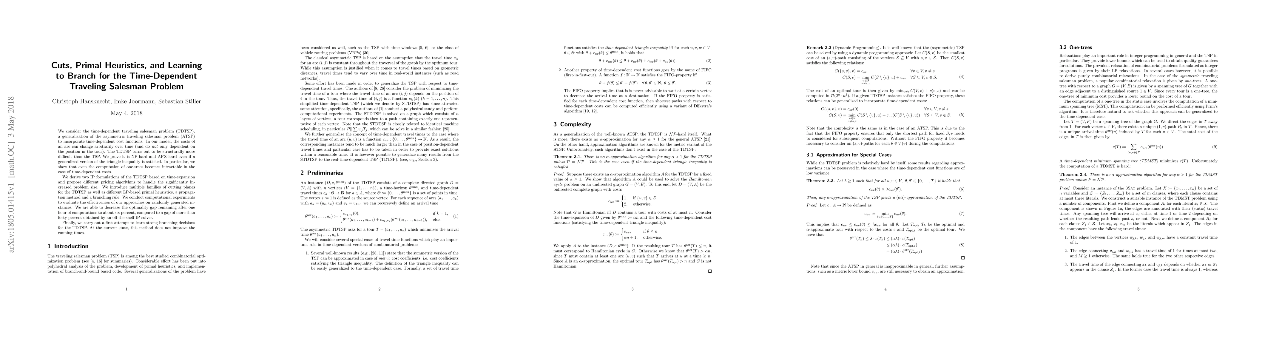 Researchers tackle the Time-Dependent Traveling Salesman Problem (TDTSP) with a focus on developing new algorithms to handle time-varying costs, finding it NP-hard and APX-hard, and proposing improvements over existing methods.