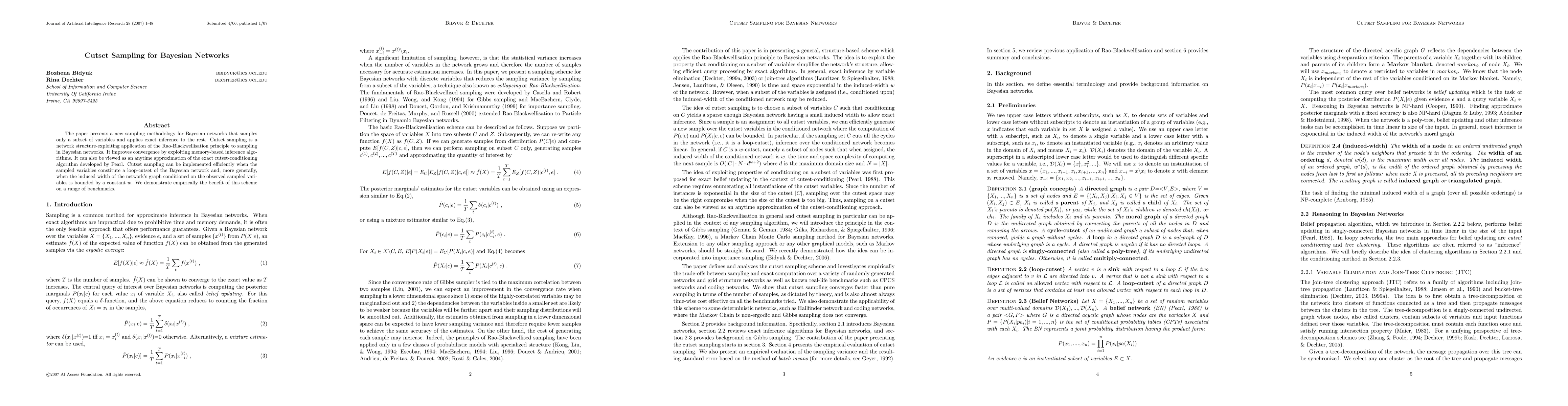 The paper introduces cutset sampling, a novel sampling method for Bayesian networks that leverages a subset of variables for exact inference, improving convergence through memory-based algorithms. Empirical results show its effectiveness across various benchmarks.