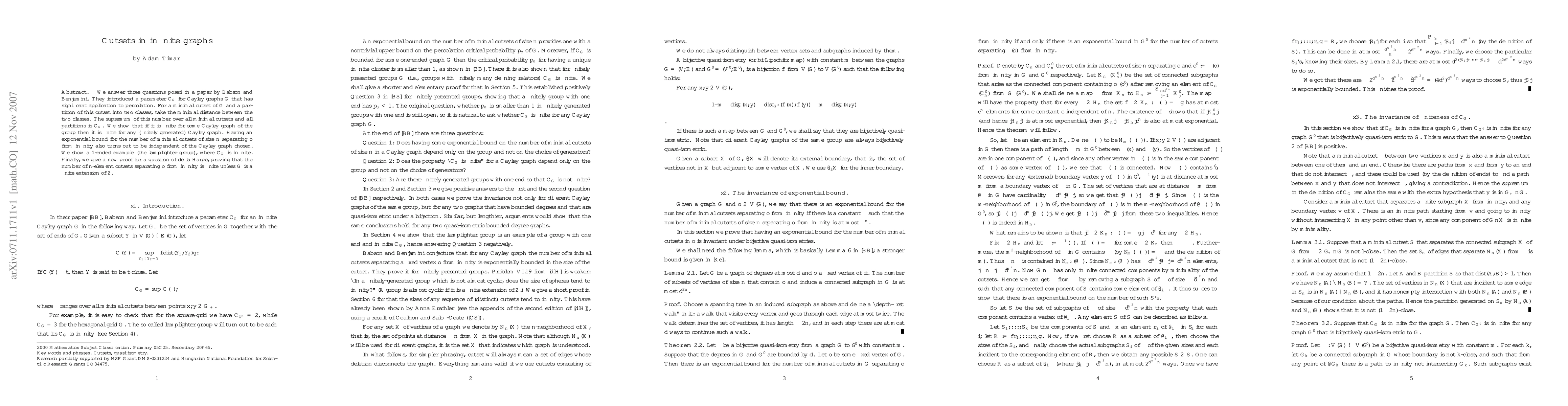 The paper analyzes cutsets in infinite graphs, specifically Cayley graphs, by examining a parameter $C_G$ introduced by Babson and Benjamini, which has applications in percolation theory.