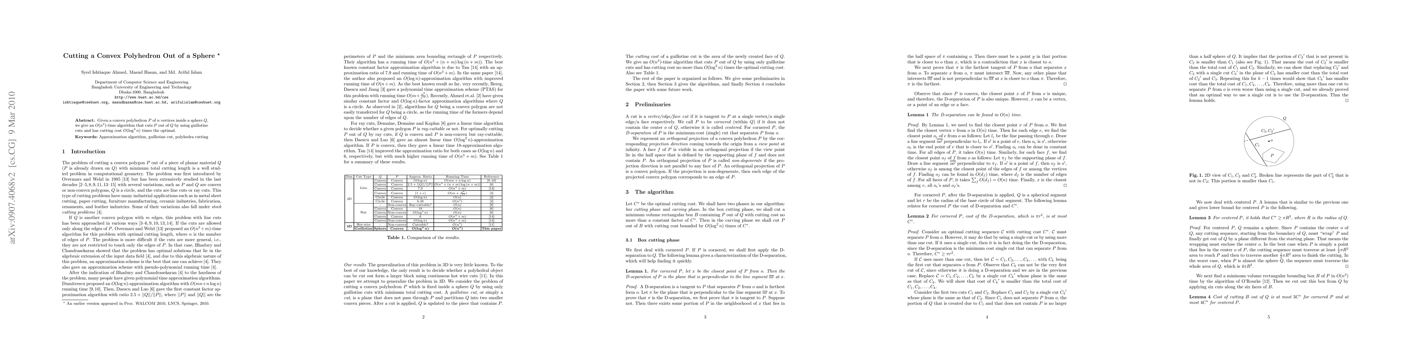 Given a convex polyhedron $P$ of $n$ vertices inside a sphere $Q$, we give an $O(n^3)$-time algorithm that cuts $P$ out of $Q$ by using guillotine cuts and has cutting cost $O((\log n)^2)$ times the optimal.