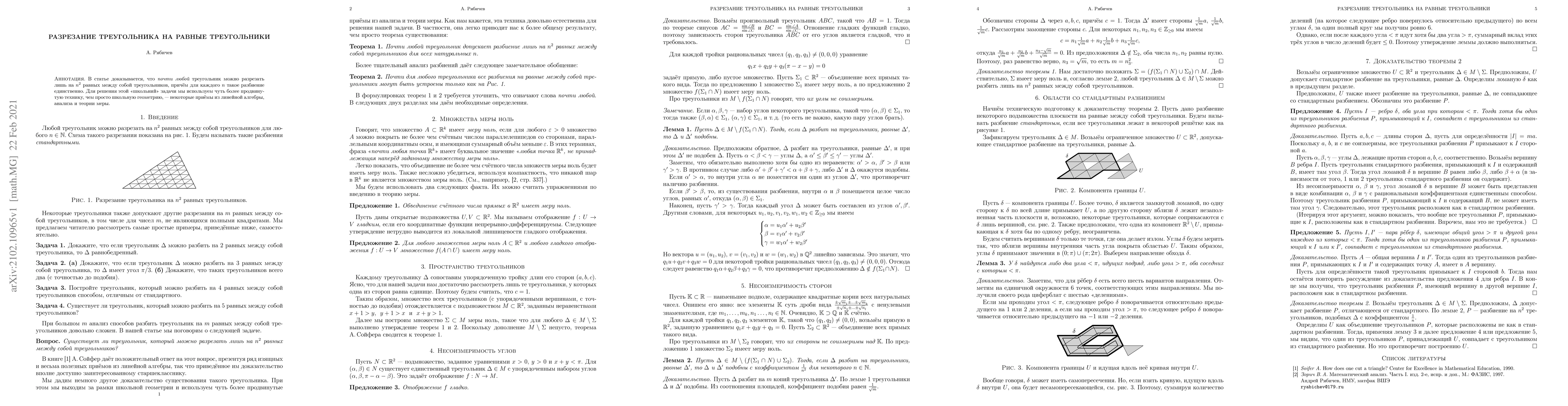 We prove that almost every triangle can be dissected only into $n^2$ triangles which have to be equal one another. Moreover, such a dissection is unique for every $n$. It turns out that to solve this "simple" problem it is convenient to use some tools from linear algebra, calculus and measure theory.