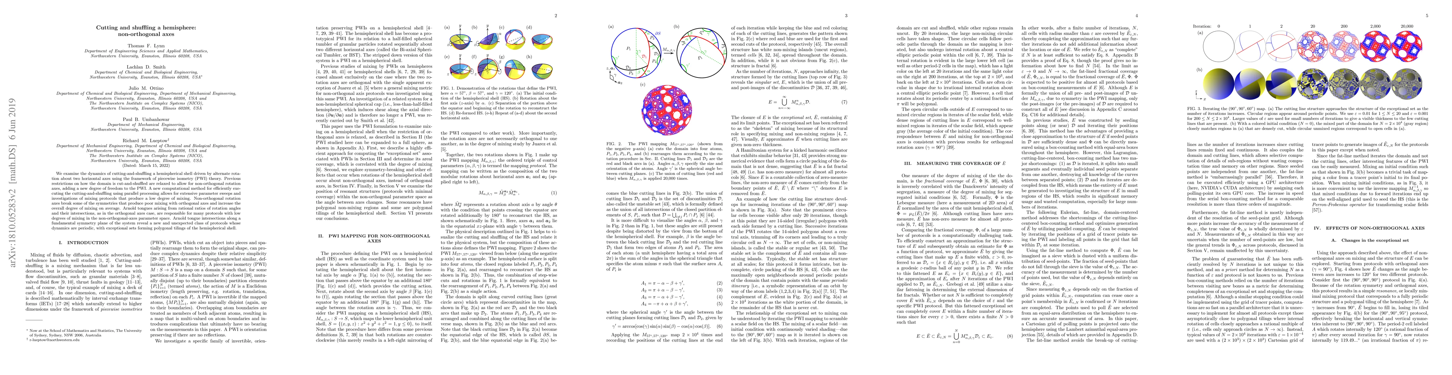 Researchers explored cutting and shuffling a hemispherical shell with non-orthogonal rotation axes, finding that these break symmetries leading to increased mixing, but also reveal periodic dynamics in certain protocols.