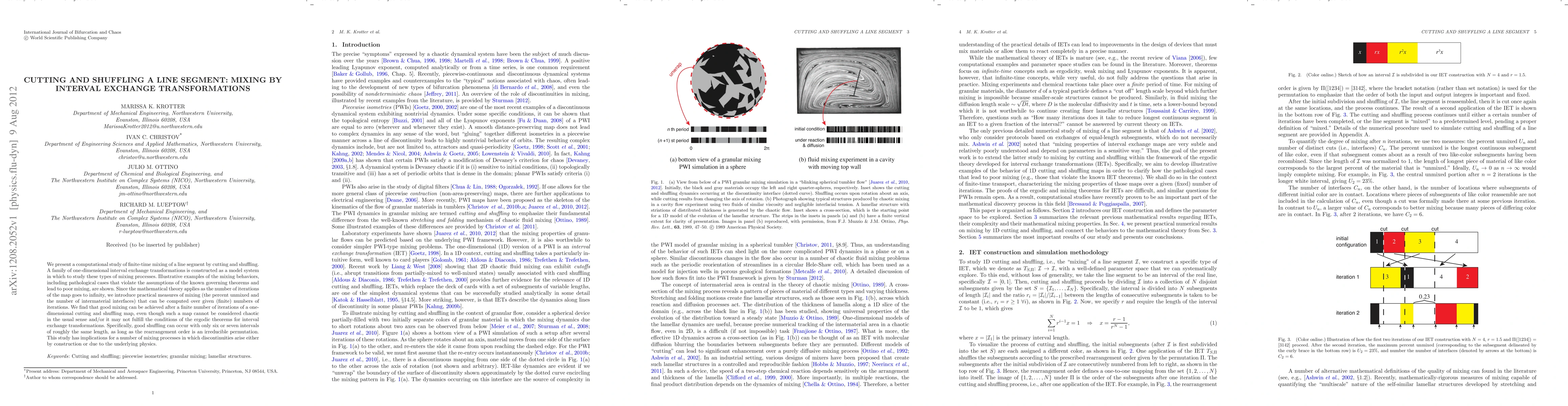 This study explores the finite-time mixing of a line segment through cutting and shuffling using interval exchange transformations, demonstrating that effective mixing can occur within a finite number of iterations despite the transformations not being chaotic or fulfilling ergodic theorem conditions. Practical measures of mixing show good results with just six or seven intervals.