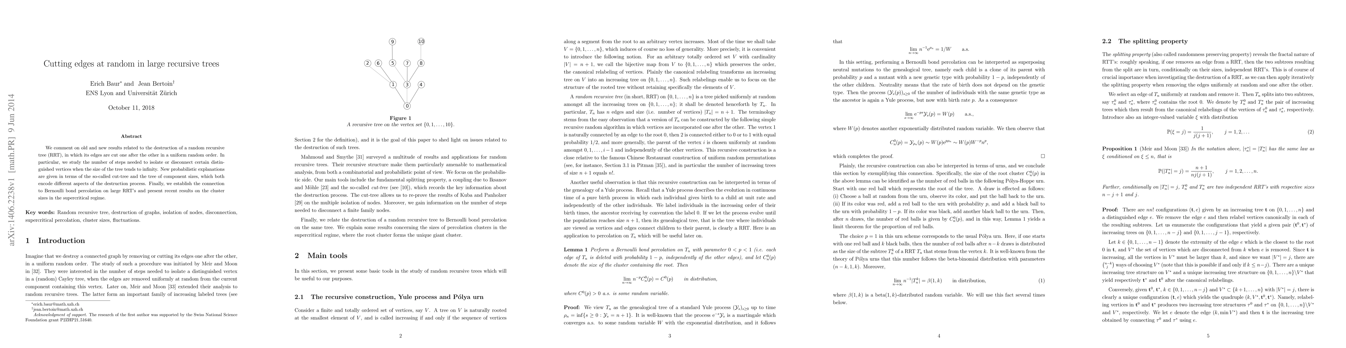 This paper investigates how many steps it takes to disconnect certain vertices in a random recursive tree as its size approaches infinity. It provides new probabilistic explanations using the cut-tree and tree of component sizes concepts.