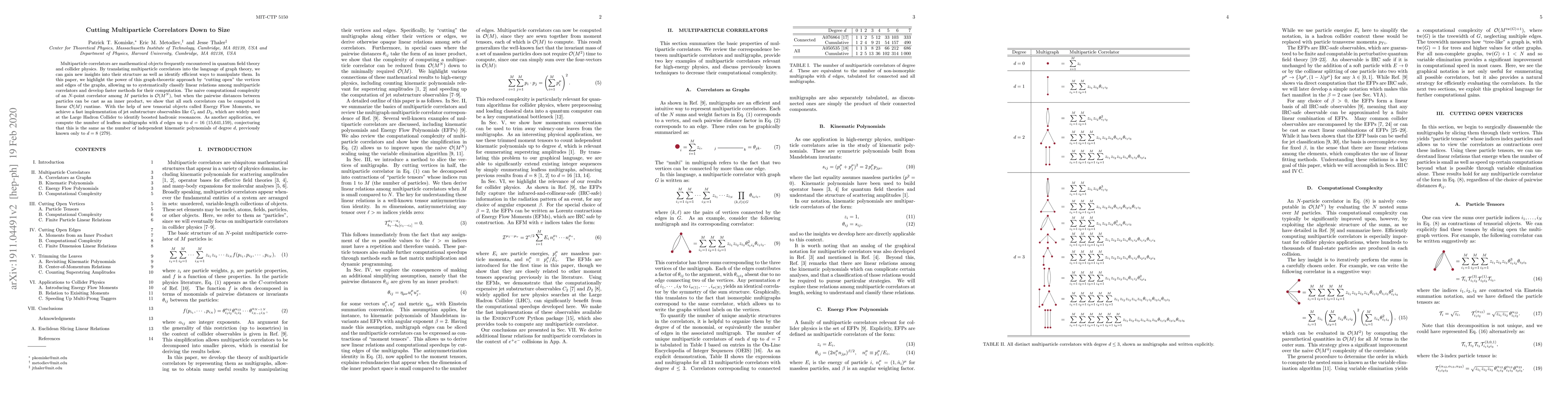 Multiparticle correlators are mathematical objects frequently encountered in quantum field theory and collider physics. By translating multiparticle correlators into the language of graph theory, we can gain new insights into their structure as well as identify efficient ways to manipulate them. In this paper, we highlight the power of this graph-theoretic approach by "cutting open" the vertices and edges of the graphs, allowing us to systematically classify linear relations among multiparticle correlators and develop faster methods for their computation. The naive computational complexity of an $N$-point correlator among $M$ particles is $\mathcal O(M^N)$, but when the pairwise distances between particles can be cast as an inner product, we show that all such correlators can be computed in linear $\mathcal O(M)$ runtime. With the help of new tensorial objects called Energy Flow Moments, we achieve a fast implementation of jet substructure observables like $C_2$ and $D_2$, which are widely used at the Large Hadron Collider to identify boosted hadronic resonances. As another application, we compute the number of leafless multigraphs with $d$ edges up to $d = 16$ (15,641,159), conjecturing that this is the same as the number of independent kinematic polynomials of degree $d$, previously known only to $d=8$ (279).