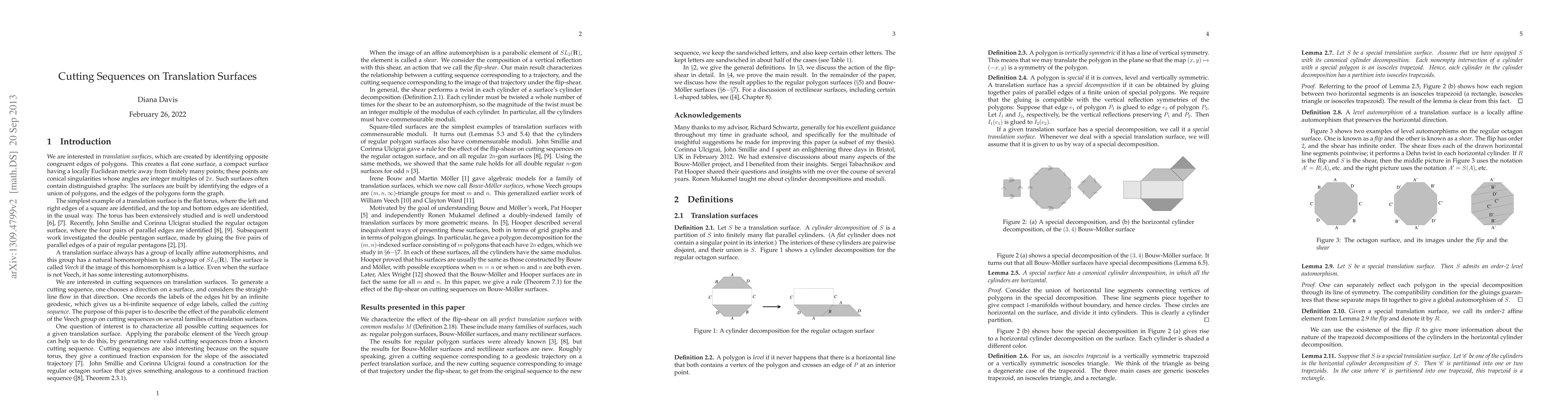 This paper studies cutting sequences in geodesic flows on translation surfaces, including Bouw-Moller surfaces, and establishes a combinatorial rule linking these sequences under parabolic transformations. The rule mirrors that of regular polygon surfaces in half of the cases and differs in the other half.