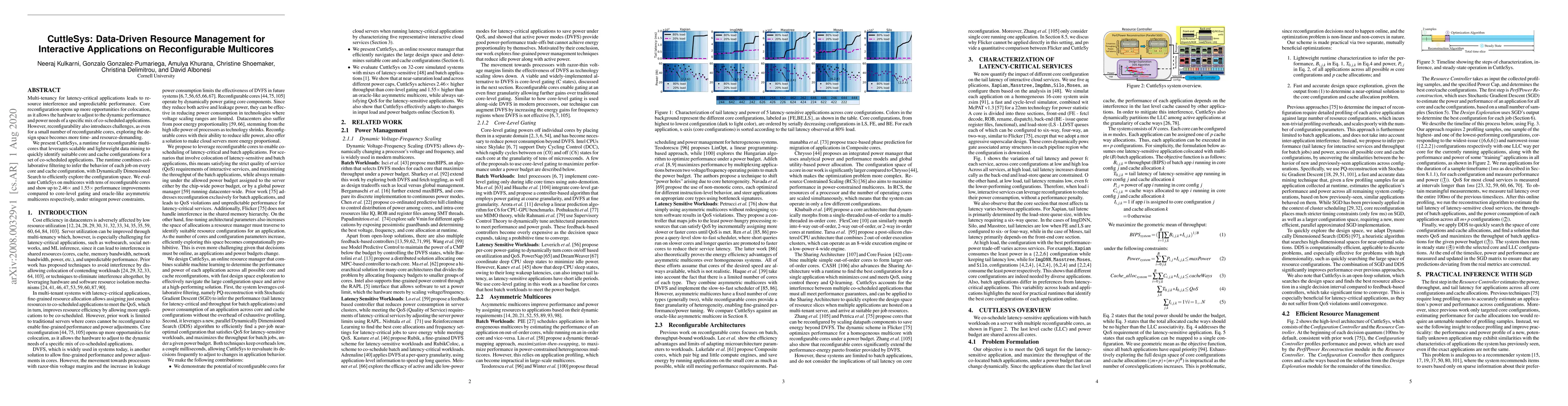 CuttleSys is a runtime system for managing resources on reconfigurable multi-cores, utilizing data mining to optimize core and cache configurations for co-scheduled applications. It achieves significant performance improvements under power constraints by leveraging collaborative filtering and Dynamically Dimensioned Search.