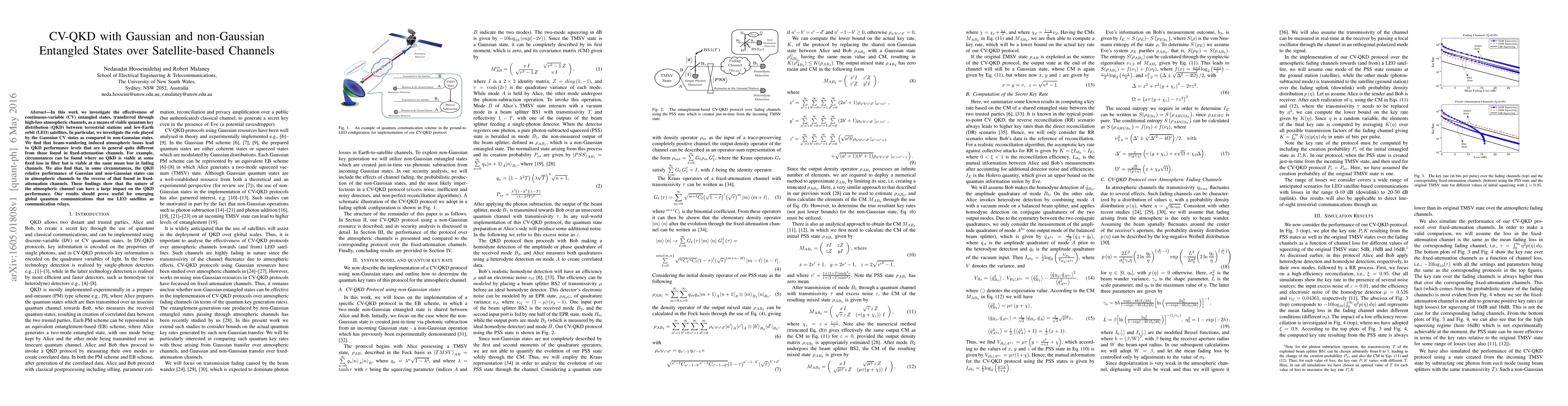 Researchers studied continuous-variable QKD with Gaussian and non-Gaussian entangled states over satellite-based channels, finding that atmospheric losses significantly impact QKD performance, often favoring non-Gaussian states in certain conditions.