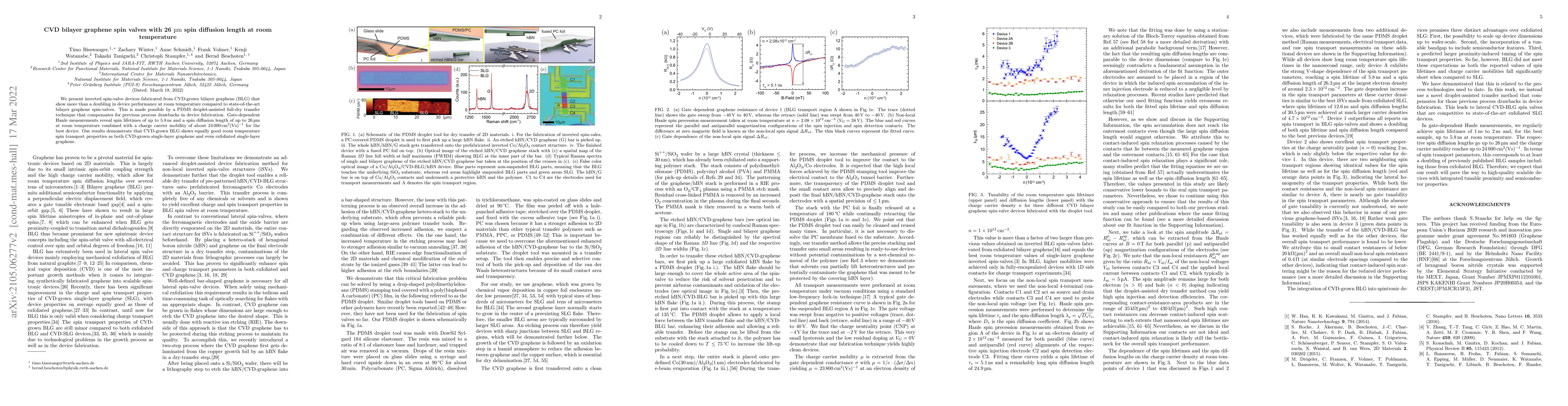 This paper reports on CVD-grown bilayer graphene spin valves with a spin diffusion length of 26 μm at room temperature, achieved through a novel PDMS droplet-assisted dry transfer technique. The method enhances device performance, resulting in spin lifetimes up to 5.8 ns and a mobility of approximately 24,000 cm²(Vs)⁻¹.