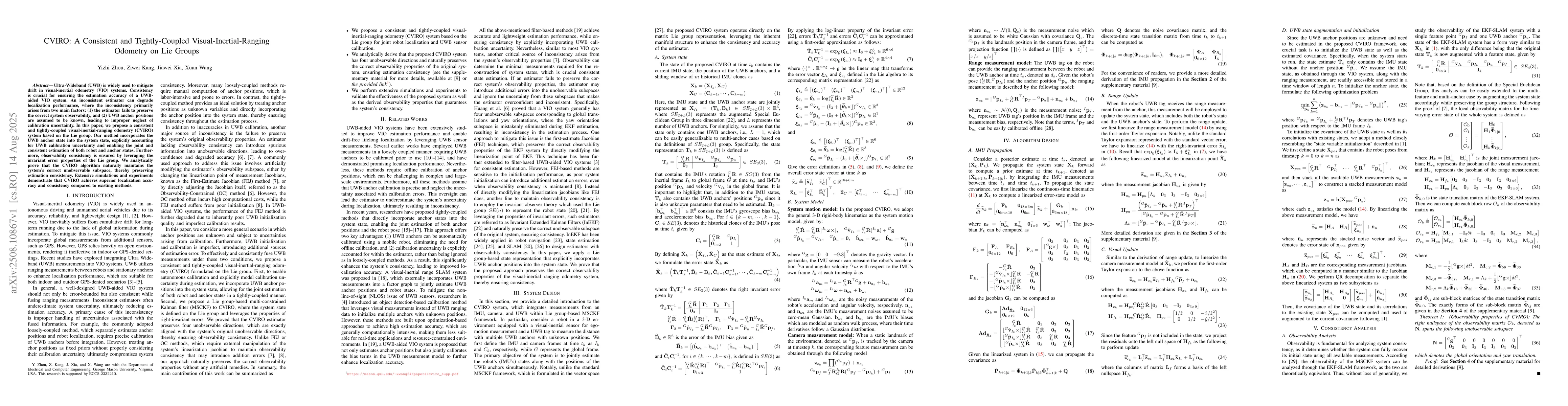 Ultra Wideband (UWB) is widely used to mitigate drift in visual-inertial odometry (VIO) systems. Consistency is crucial for ensuring the estimation accuracy of a UWBaided VIO system. An inconsistent estimator can degrade localization performance, where the inconsistency primarily arises from two main factors: (1) the estimator fails to preserve the correct system observability, and (2) UWB anchor positions are assumed to be known, leading to improper neglect of calibration uncertainty. In this paper, we propose a consistent and tightly-coupled visual-inertial-ranging odometry (CVIRO) system based on the Lie group. Our method incorporates the UWB anchor state into the system state, explicitly accounting for UWB calibration uncertainty and enabling the joint and consistent estimation of both robot and anchor states. Furthermore, observability consistency is ensured by leveraging the invariant error properties of the Lie group. We analytically prove that the CVIRO algorithm naturally maintains the system's correct unobservable subspace, thereby preserving estimation consistency. Extensive simulations and experiments demonstrate that CVIRO achieves superior localization accuracy and consistency compared to existing methods.