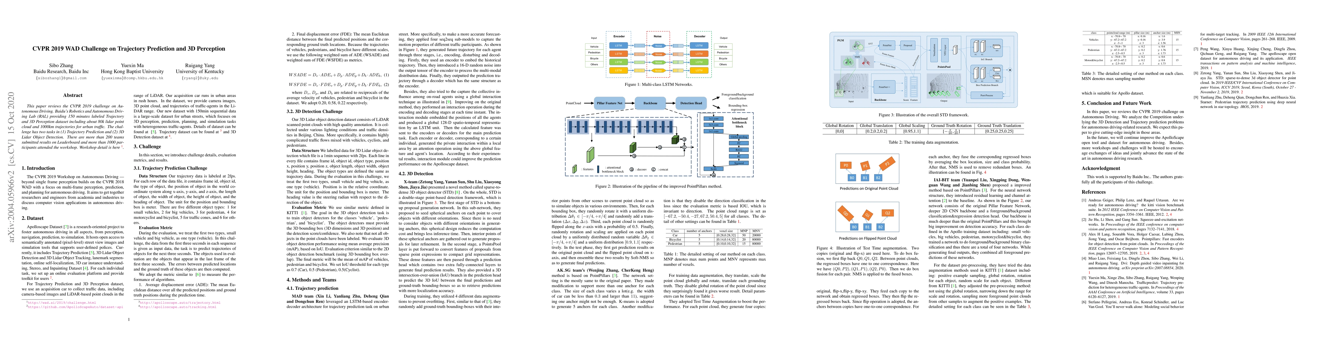 This paper reviews the CVPR 2019 challenge on Autonomous Driving. Baidu's Robotics and Autonomous Driving Lab (RAL) providing 150 minutes labeled Trajectory and 3D Perception dataset including about 80k lidar point cloud and 1000km trajectories for urban traffic. The challenge has two tasks in (1) Trajectory Prediction and (2) 3D Lidar Object Detection. There are more than 200 teams submitted results on Leaderboard and more than 1000 participants attended the workshop.