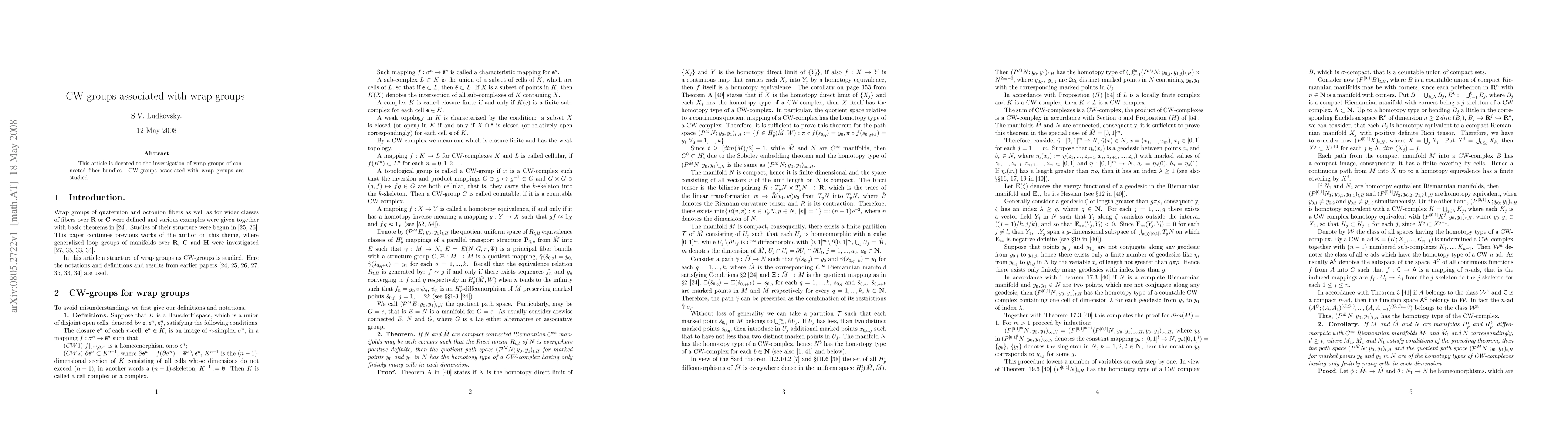 Summary: The paper investigates wrap groups of connected fiber bundles and explores the associated CW-groups, contributing to the understanding of their algebraic and topological properties.