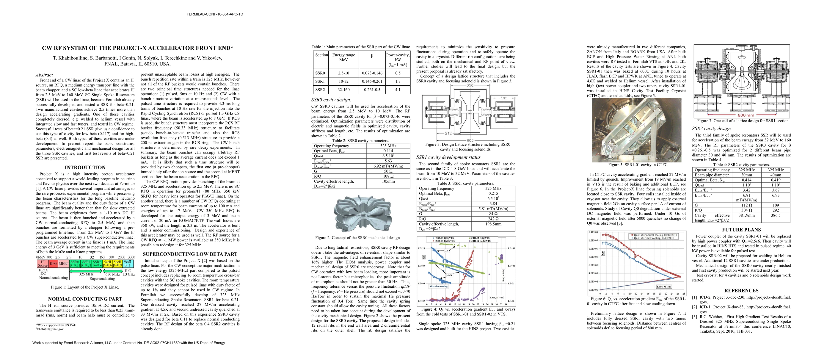 Front end of a CW linac of the Project X contains an H source, an RFQ, a medium energy transport line with the beam chopper, and a SC low-beta linac that accelerates H- from 2.5 MeV to 160 MeV. SC Single Spoke Resonators (SSR) will be used in the linac, because Fermilab already successfully developed and tested a SSR for beta=0.21. Two manufactured cavities achieve 2.5 times more than design accelerating gradients. One of these cavities completely dressed, e.g. welded to helium vessel with integrated slow and fast tuners, and tested in CW regime. Successful tests of beta=0.21 SSR give us a confidence to use this type of cavity for low beta (0.117) and for high-beta (0.4) as well. Both types of these cavities are under development. In present report the basic constrains, parameters, electromagnetic and mechanical design for all the three SSR cavities, and first test results of beta=0.21 SSR are presented.