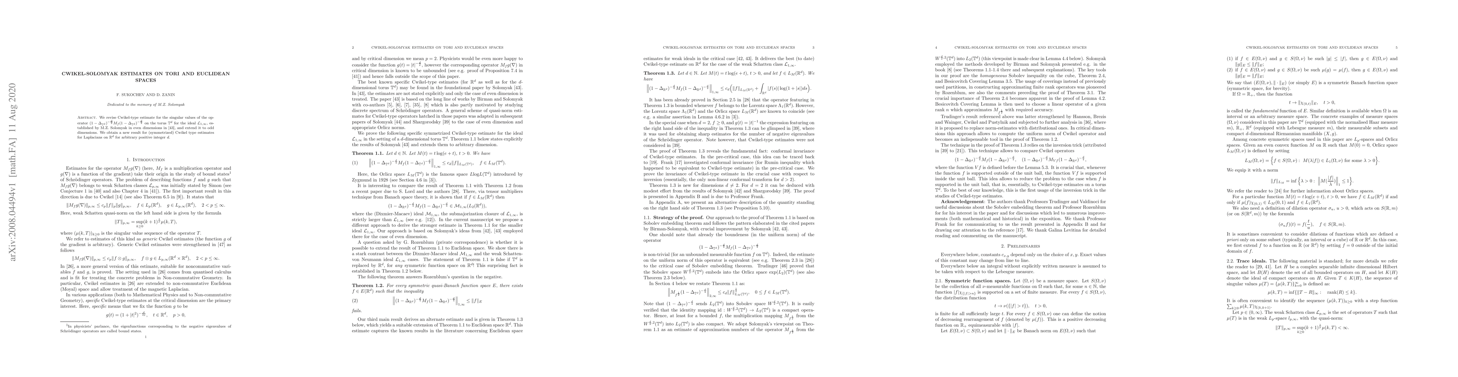 This paper revises Cwikel-type estimates for singular values of a specific operator on the torus, extending Solomyak's results from even to odd dimensions. It also introduces new estimates for symmetrized Cwikel type estimates on Euclidean spaces for any dimension.