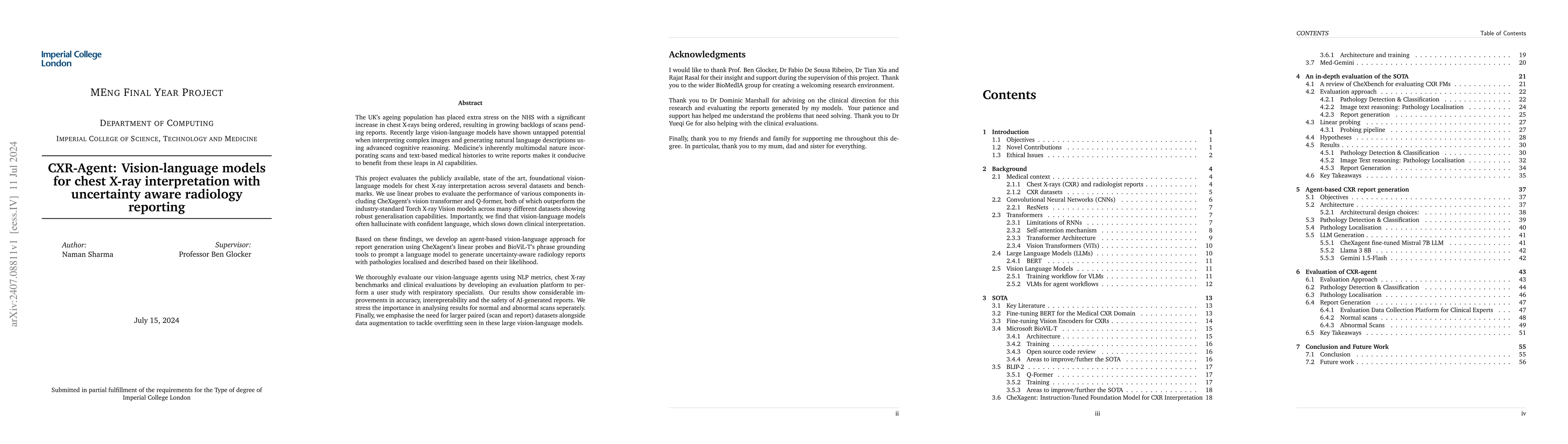 Recently large vision-language models have shown potential when interpreting complex images and generating natural language descriptions using advanced reasoning. Medicine's inherently multimodal nature incorporating scans and text-based medical histories to write reports makes it conducive to benefit from these leaps in AI capabilities. We evaluate the publicly available, state of the art, foundational vision-language models for chest X-ray interpretation across several datasets and benchmarks. We use linear probes to evaluate the performance of various components including CheXagent's vision transformer and Q-former, which outperform the industry-standard Torch X-ray Vision models across many different datasets showing robust generalisation capabilities. Importantly, we find that vision-language models often hallucinate with confident language, which slows down clinical interpretation. Based on these findings, we develop an agent-based vision-language approach for report generation using CheXagent's linear probes and BioViL-T's phrase grounding tools to generate uncertainty-aware radiology reports with pathologies localised and described based on their likelihood. We thoroughly evaluate our vision-language agents using NLP metrics, chest X-ray benchmarks and clinical evaluations by developing an evaluation platform to perform a user study with respiratory specialists. Our results show considerable improvements in accuracy, interpretability and safety of the AI-generated reports. We stress the importance of analysing results for normal and abnormal scans separately. Finally, we emphasise the need for larger paired (scan and report) datasets alongside data augmentation to tackle overfitting seen in these large vision-language models.