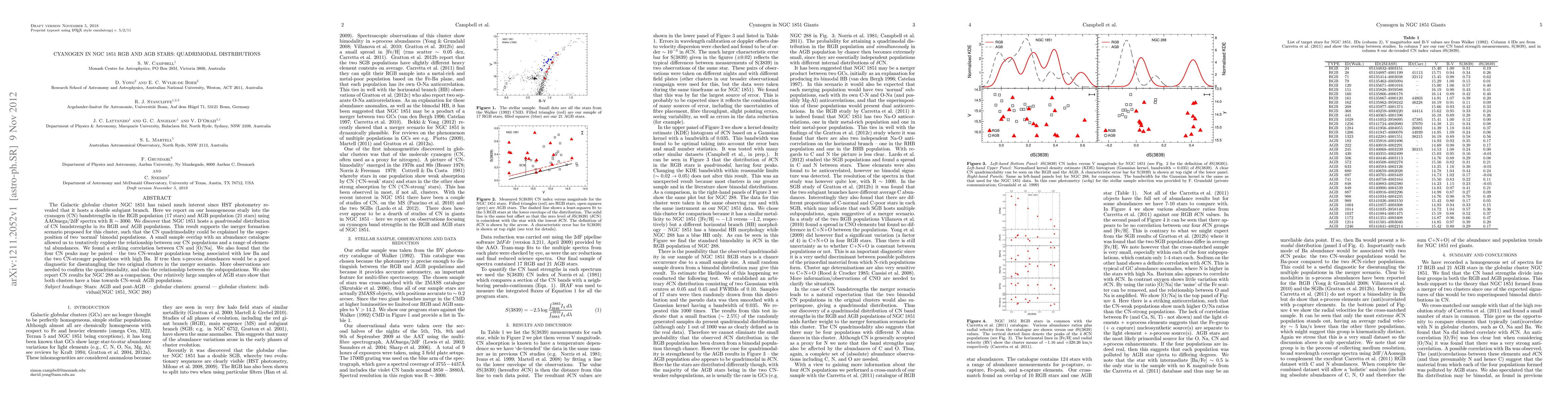 This study reveals a quadrimodal distribution of cyanogen (CN) bandstrengths in the RGB and AGB stars of the globular cluster NGC 1851, supporting a merger formation scenario. The findings suggest a correlation between CN bandstrengths and elemental abundances, particularly [O/Na], and hint at a potential pairing of CN peaks with Ba abundances.