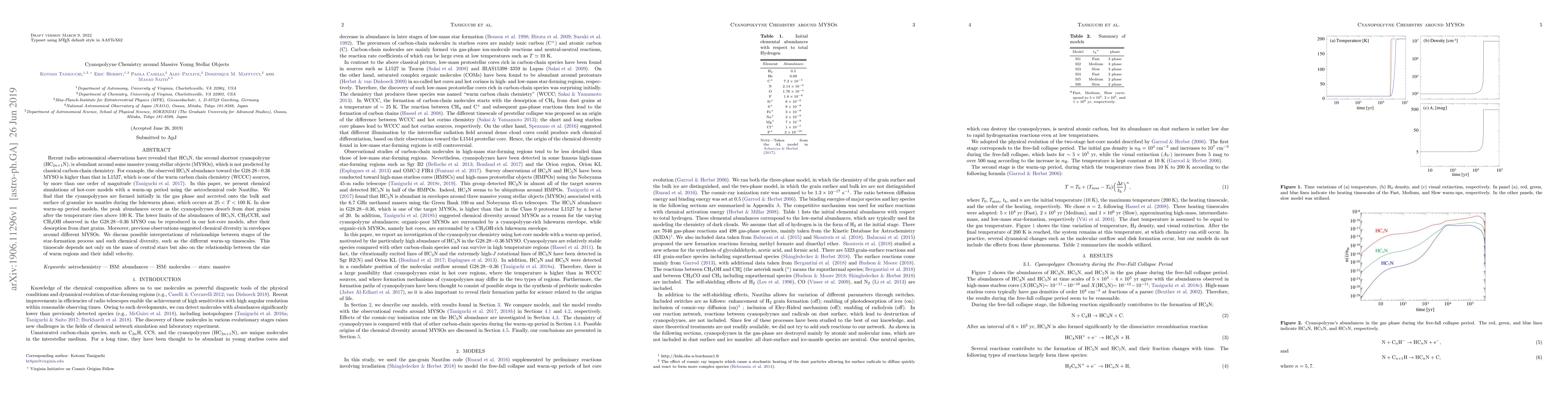 The paper presents detailed chemical simulations using the Nautilus code, demonstrating the formation, accretion, and desorption of cyanopolyynes in warm-up regions around MYSOs.
