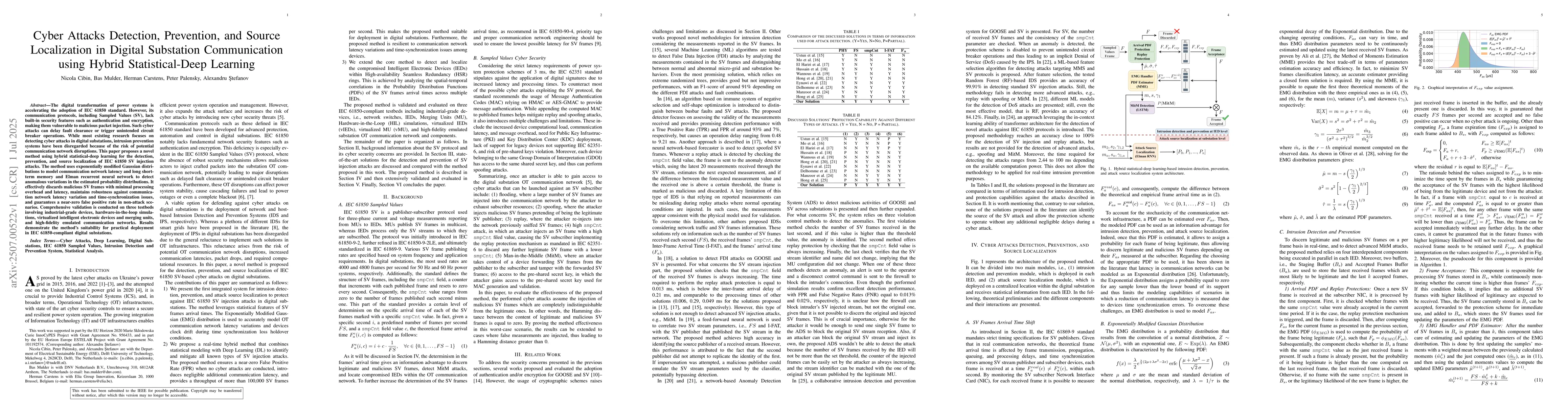 The digital transformation of power systems is accelerating the adoption of IEC 61850 standard. However, its communication protocols, including Sampled Values (SV), lack built-in security features such as authentication and encryption, making them vulnerable to malicious packet injection. Such cyber attacks can delay fault clearance or trigger unintended circuit breaker operations. While most existing research focuses on detecting cyber attacks in digital substations, intrusion prevention systems have been disregarded because of the risk of potential communication network disruptions. This paper proposes a novel method using hybrid statistical-deep learning for the detection, prevention, and source localization of IEC 61850 SV injection attacks. The method uses exponentially modified Gaussian distributions to model communication network latency and long short-term memory and Elman recurrent neural network to detect anomalous variations in the estimated probability distributions. It effectively discards malicious SV frames with minimal processing overhead and latency, maintains robustness against communication network latency variation and time-synchronization issues, and guarantees a near-zero false positive rate in non-attack scenarios. Comprehensive validation is conducted on three testbeds involving industrial-grade devices, hardware-in-the-loop simulations, virtualized intelligent electronic devices and merging units, and high-fidelity emulated communication networks. Results demonstrate the method's suitability for practical deployment in IEC 61850-compliant digital substations.