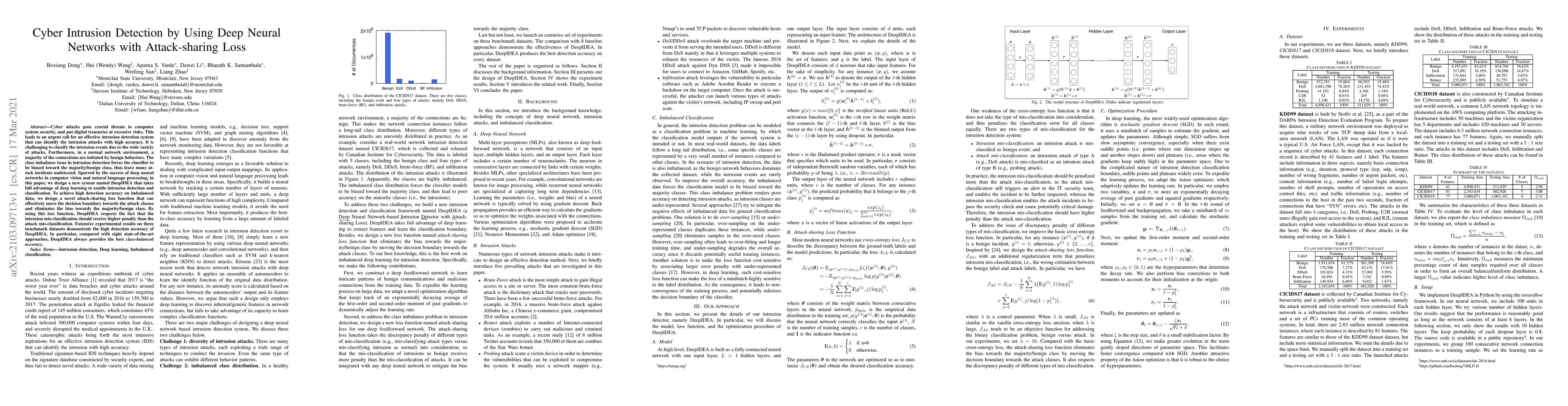 This paper proposes DeepIDEA, a deep neural network system for cyber intrusion detection that utilizes an innovative attack-sharing loss function to address the class imbalance issue. Experimental results show that DeepIDEA achieves superior detection accuracy compared to eight state-of-the-art methods on three benchmark datasets.