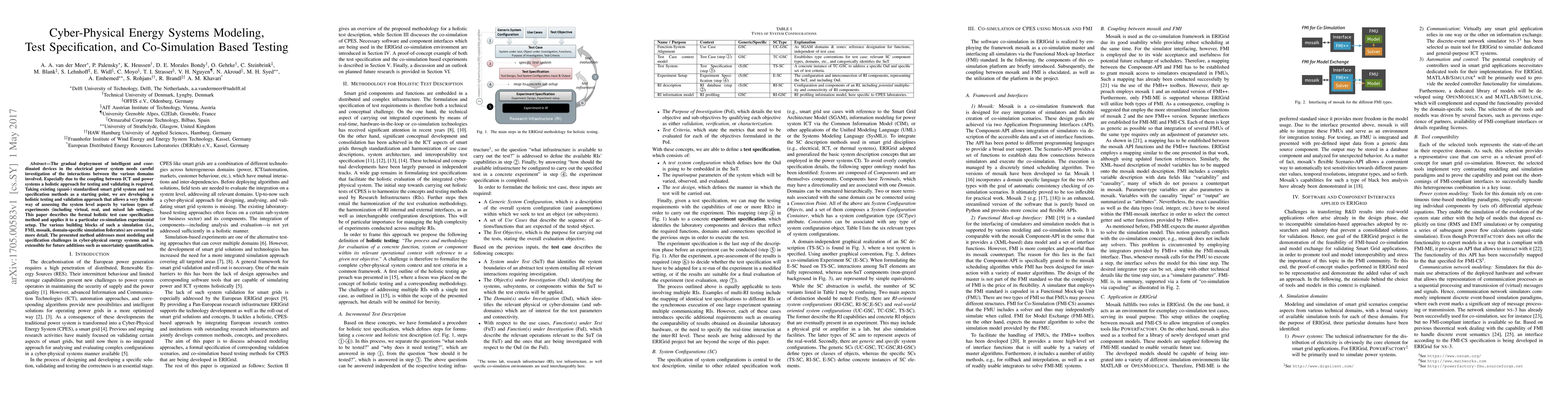 The gradual deployment of intelligent and coordinated devices in the electrical power system needs careful investigation of the interactions between the various domains involved. Especially due to the coupling between ICT and power systems a holistic approach for testing and validating is required. Taking existing (quasi-) standardised smart grid system and test specification methods as a starting point, we are developing a holistic testing and validation approach that allows a very flexible way of assessing the system level aspects by various types of experiments (including virtual, real, and mixed lab settings). This paper describes the formal holistic test case specification method and applies it to a particular co-simulation experimental setup. The various building blocks of such a simulation (i.e., FMI, mosaik, domain-specific simulation federates) are covered in more detail. The presented method addresses most modeling and specification challenges in cyber-physical energy systems and is extensible for future additions such as uncertainty quantification.
