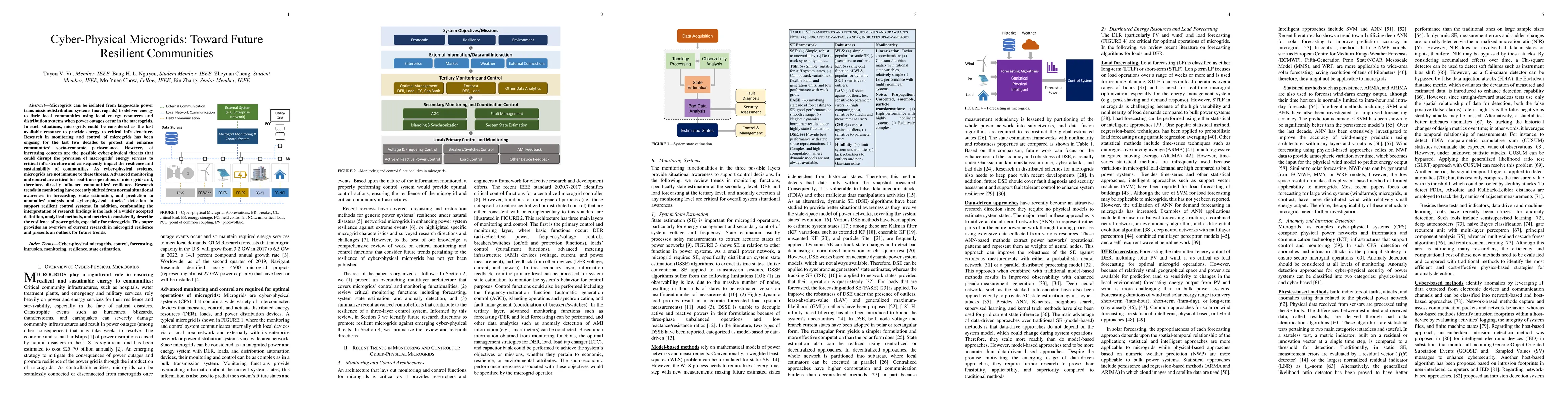 This paper reviews current research on monitoring and control of microgrids to enhance community resilience against cyber-physical threats, emphasizing the shift towards anomaly detection and attack prevention. It also highlights the need for standardized metrics and methods to consistently assess microgrid resilience.