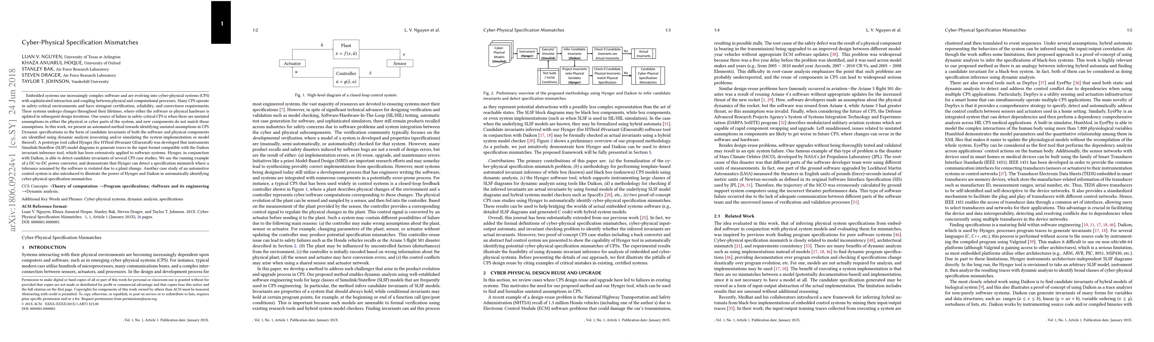 This paper presents an automated method to identify unstated assumptions in cyber-physical systems (CPS) that can lead to failure. The method uses dynamic analysis to generate candidate invariants and employs a prototype tool, Hynger, in conjunction with Daikon to detect specification mismatches, demonstrated through case studies of a DC-to-DC power converter and an automotive control system.