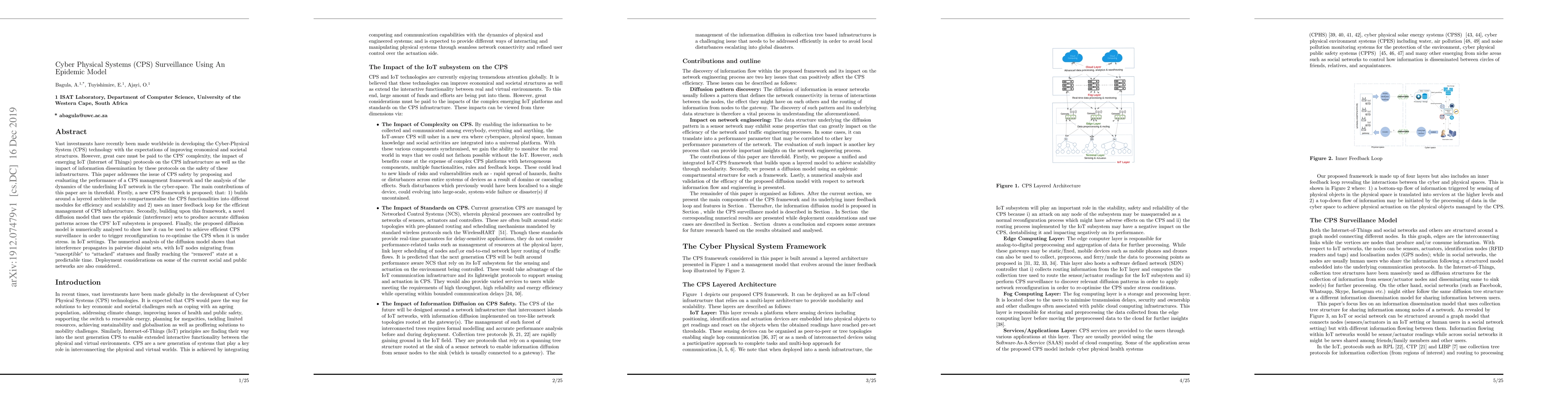 Vast investments have recently been made worldwide in developing the Cyber-Physical System (CPS) technology with the expectations of improving economical and societal structures. However, great care must be paid to the CPS' complexity, the impact of emerging IoT (Internet of Things) protocols on the CPS infrastructure as well as the impact of information dissemination by these protocols on the safety of these infrastructures. This paper addresses the issue of CPS safety by proposing and evaluating the performance of a CPS management framework and the analysis of the dynamics of the underlining IoT network in the cyber-space. The main contributions of this paper are in threefold. Firstly, a new CPS framework is proposed; that: 1) builds around a layered architecture to compartmentalise the CPS functionalities into different modules for efficiency and scalability and 2) uses an inner feedback loop for the efficient management of CPS infrastructure. Secondly, building upon this framework, a novel diffusion model that uses the epidemic (interference) sets to produce accurate diffusion patterns across the CPS IoT subsystem is proposed. Finally, the proposed diffusion model is numerically analysed to show how it can be used to achieve efficient CPS surveillance in order to trigger reconfiguration to re-optimise the CPS when it is under stress. in IoT settings. The numerical analysis of the diffusion model shows that interference propagates in pairwise disjoint sets, with IoT nodes migrating from "susceptible" to "attacked" statuses and finally reaching the "removed" state at a predictable time. Deployment considerations on some of the current social and public networks are also onsidered
