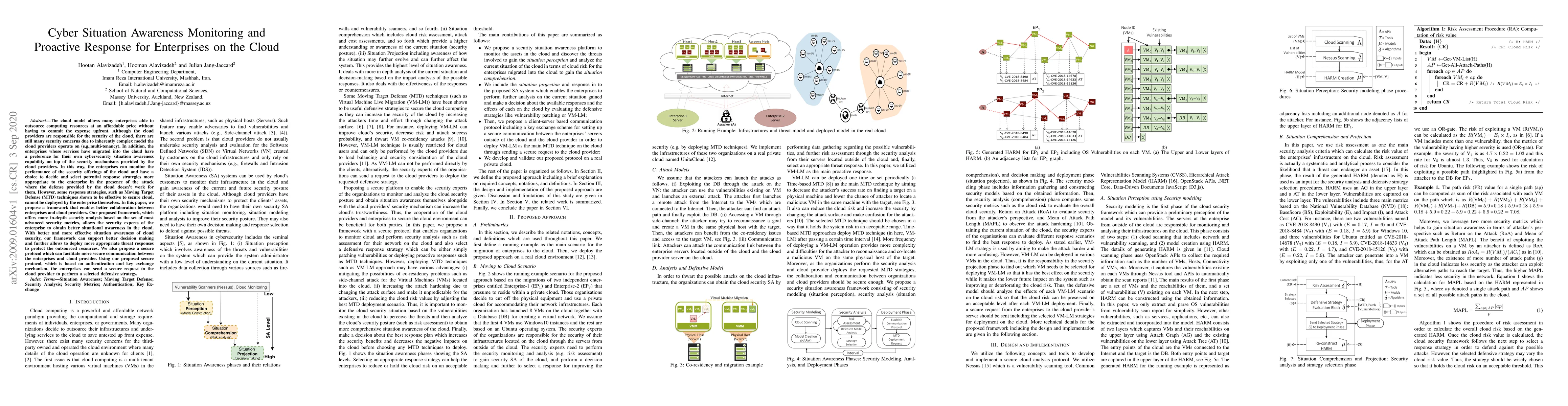 The cloud model allows many enterprises able to outsource computing resources at an affordable price without having to commit the expense upfront. Although the cloud providers are responsible for the security of the cloud, there are still many security concerns due to inherently complex model the cloud providers operate on (e.g.,multi-tenancy). In addition, the enterprises whose services have migrated into the cloud have a preference for their own cybersecurity situation awareness capability on top of the security mechanisms provided by the cloud providers. In this way, the enterprises can monitor the performance of the security offerings of the cloud and have a choice to decide and select potential response strategies more appropriate to the enterprise in the presence of the attack where the defense provided by the cloud doesn't work for them. However, some response strategies, such as Moving Target Defense (MTD) techniques shown to be effective to secure cloud, cannot be deployed by the enterprise themselves. In this paper, we propose a framework that enables better collaboration between enterprises and cloud providers. Our proposed framework, which offers more in-depth security analysis based on the set of most advanced security metrics, allows the security experts of the enterprise to obtain better situational awareness in the cloud. With better and more effective situation awareness of cloud security, our framework can support better decision making and further allows to deploy more appropriate threat responses to protect the outsourced resources. We also propose a secure protocol which can facilitate more secure communication between the enterprises and cloud provider. Using our proposed secure protocol, which is based on authentication and key exchange mechanism, the enterprises can send a secure request to the cloud provider to perform a selected defensive strategy.