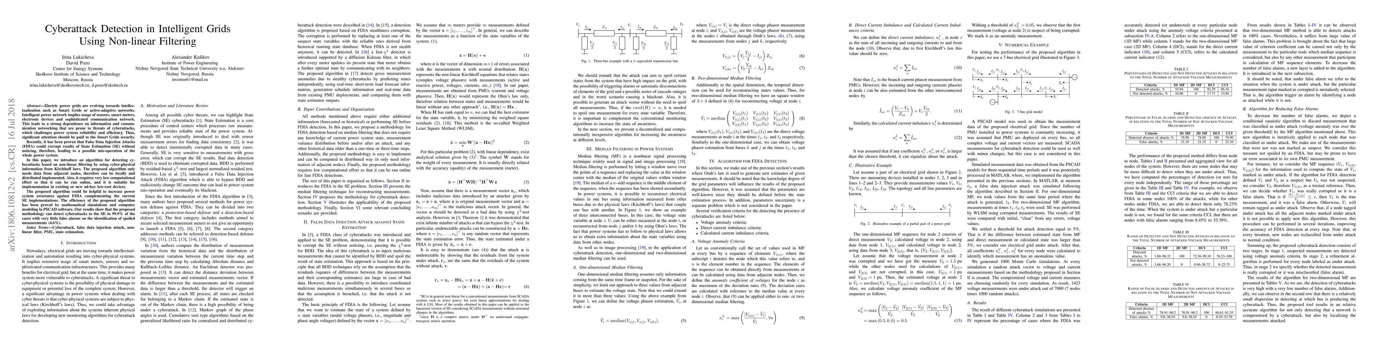 A cyber attack detection algorithm was proposed using one-dimensional and two-dimensional median filtering techniques