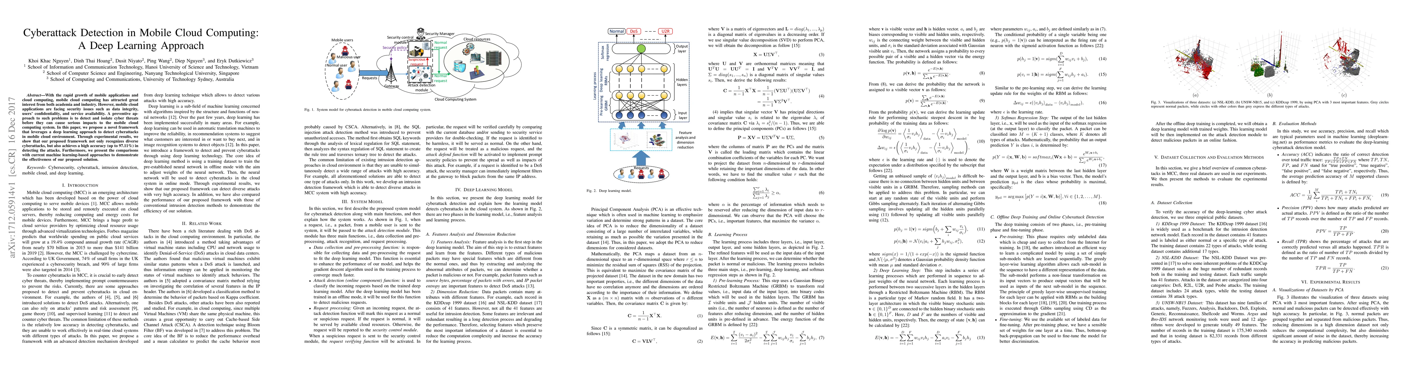 This paper proposes a deep learning framework for detecting cyberattacks in mobile cloud computing, achieving high accuracy (up to 97.11%) and outperforming current machine learning-based methods. The framework aims to address security issues like data integrity and user confidentiality in mobile cloud applications.