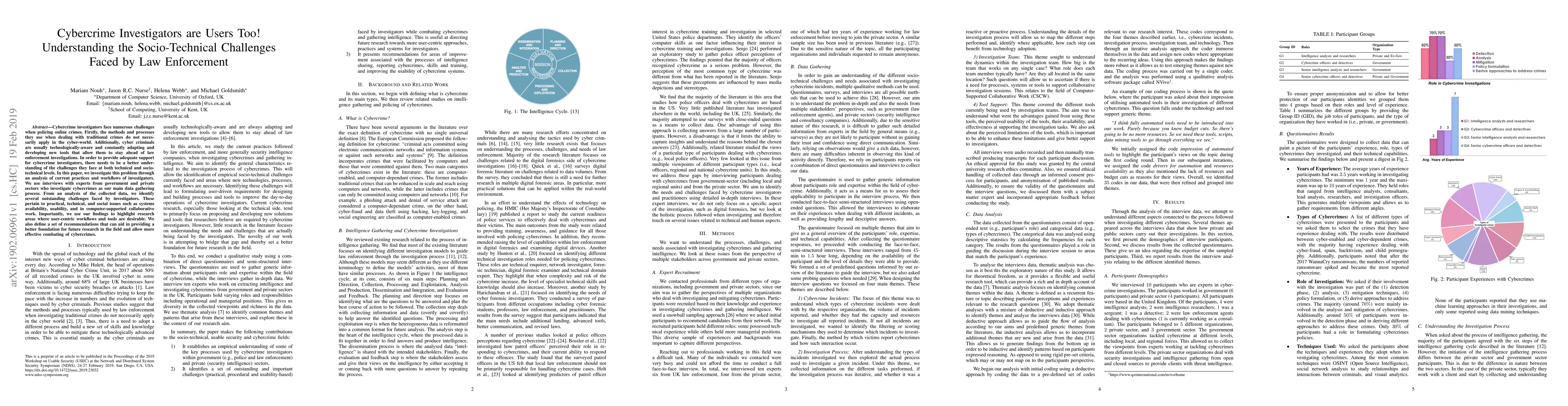 Cybercrime investigators face numerous challenges when policing online crimes. Firstly, the methods and processes they use when dealing with traditional crimes do not necessarily apply in the cyber-world. Additionally, cyber criminals are usually technologically-aware and constantly adapting and developing new tools that allow them to stay ahead of law enforcement investigations. In order to provide adequate support for cybercrime investigators, there needs to be a better understanding of the challenges they face at both technical and socio-technical levels. In this paper, we investigate this problem through an analysis of current practices and workflows of investigators. We use interviews with experts from government and private sectors who investigate cybercrimes as our main data gathering process. From an analysis of the collected data, we identify several outstanding challenges faced by investigators. These pertain to practical, technical, and social issues such as systems availability, usability, and in computer-supported collaborative work. Importantly, we use our findings to highlight research areas where user-centric workflows and tools are desirable. We also define a set of recommendations that can aid in providing a better foundation for future research in the field and allow more effective combating of cybercrimes.
