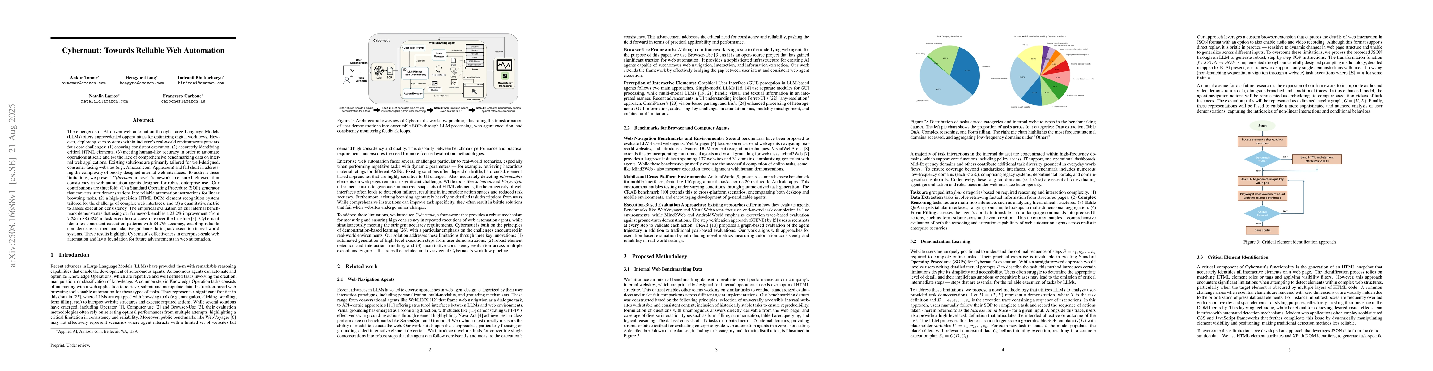 The emergence of AI-driven web automation through Large Language Models (LLMs) offers unprecedented opportunities for optimizing digital workflows. However, deploying such systems within industry's real-world environments presents four core challenges: (1) ensuring consistent execution, (2) accurately identifying critical HTML elements, (3) meeting human-like accuracy in order to automate operations at scale and (4) the lack of comprehensive benchmarking data on internal web applications. Existing solutions are primarily tailored for well-designed, consumer-facing websites (e.g., Amazon.com, Apple.com) and fall short in addressing the complexity of poorly-designed internal web interfaces. To address these limitations, we present Cybernaut, a novel framework to ensure high execution consistency in web automation agents designed for robust enterprise use. Our contributions are threefold: (1) a Standard Operating Procedure (SOP) generator that converts user demonstrations into reliable automation instructions for linear browsing tasks, (2) a high-precision HTML DOM element recognition system tailored for the challenge of complex web interfaces, and (3) a quantitative metric to assess execution consistency. The empirical evaluation on our internal benchmark demonstrates that using our framework enables a 23.2% improvement (from 72% to 88.68%) in task execution success rate over the browser_use. Cybernaut identifies consistent execution patterns with 84.7% accuracy, enabling reliable confidence assessment and adaptive guidance during task execution in real-world systems. These results highlight Cybernaut's effectiveness in enterprise-scale web automation and lay a foundation for future advancements in web automation.
