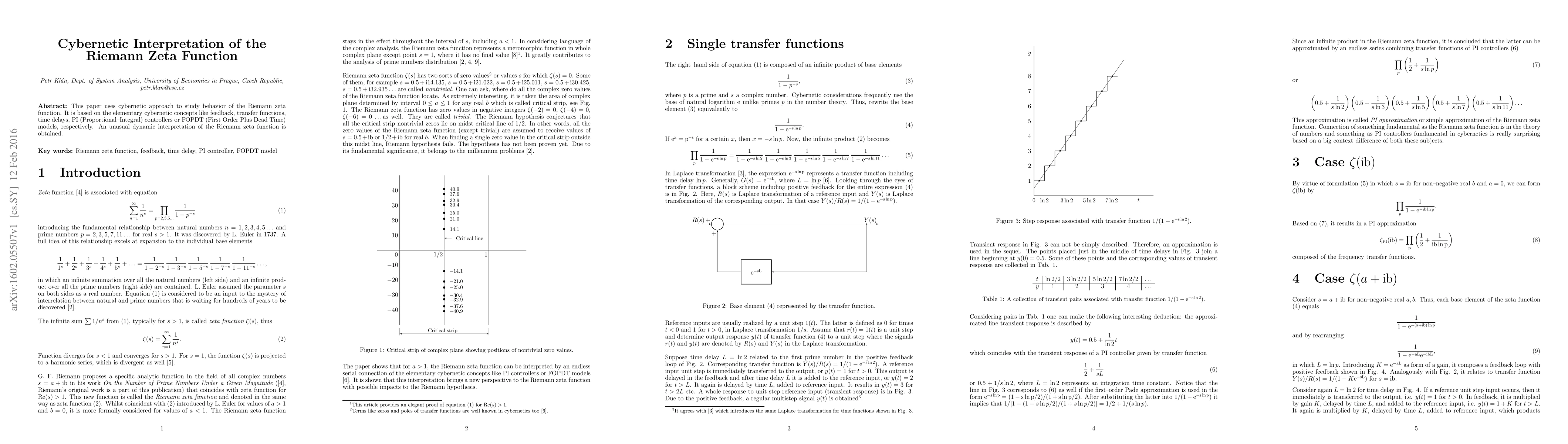 This paper employs cybernetic principles to analyze the behavior of the Riemann zeta function, revealing a novel dynamic interpretation through concepts such as feedback, transfer functions, and PI controllers.