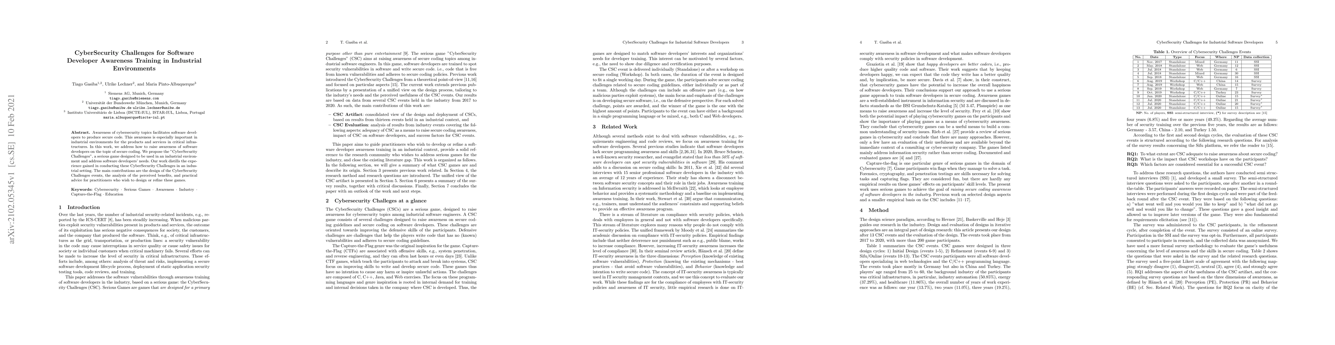 This paper proposes "CyberSecurity Challenges," a serious game to enhance software developers' cybersecurity awareness in industrial environments. The study analyzes the benefits and provides practical advice for designing similar games to improve secure coding practices.