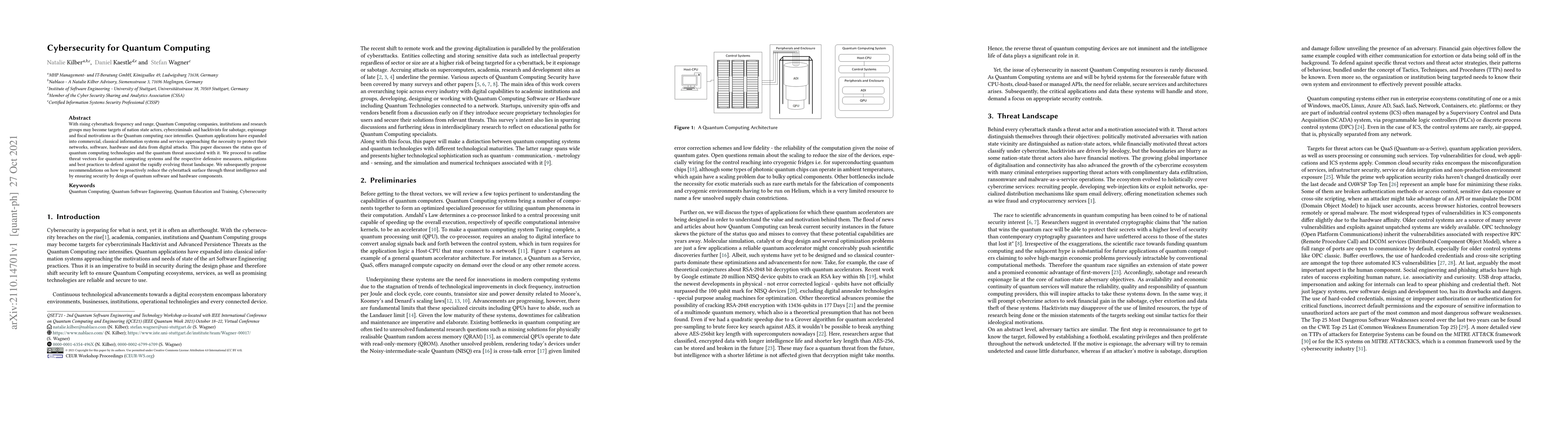 The paper discusses the status quo of quantum computing technologies and associated threats, outlining threat vectors, defensive measures, and proposing recommendations for securing quantum systems.