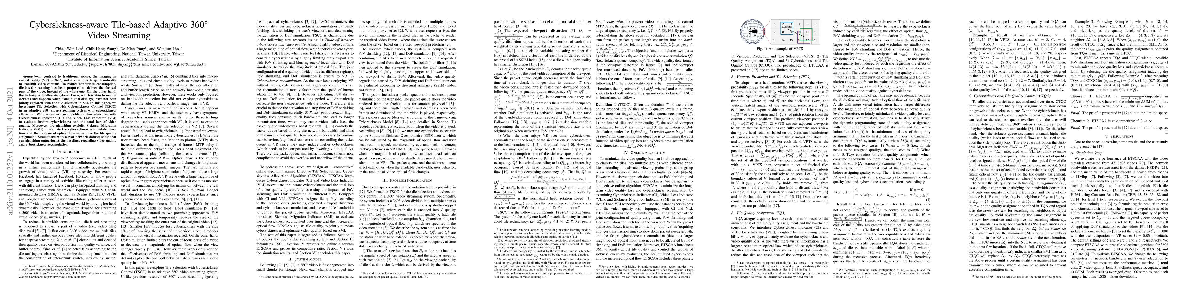This work stands out by being one of the first to jointly consider tile selection and cybersickness control in adaptive 360° video streaming systems, proposing an m-competitive online algorithm that optimizes both video quality and user comfort.