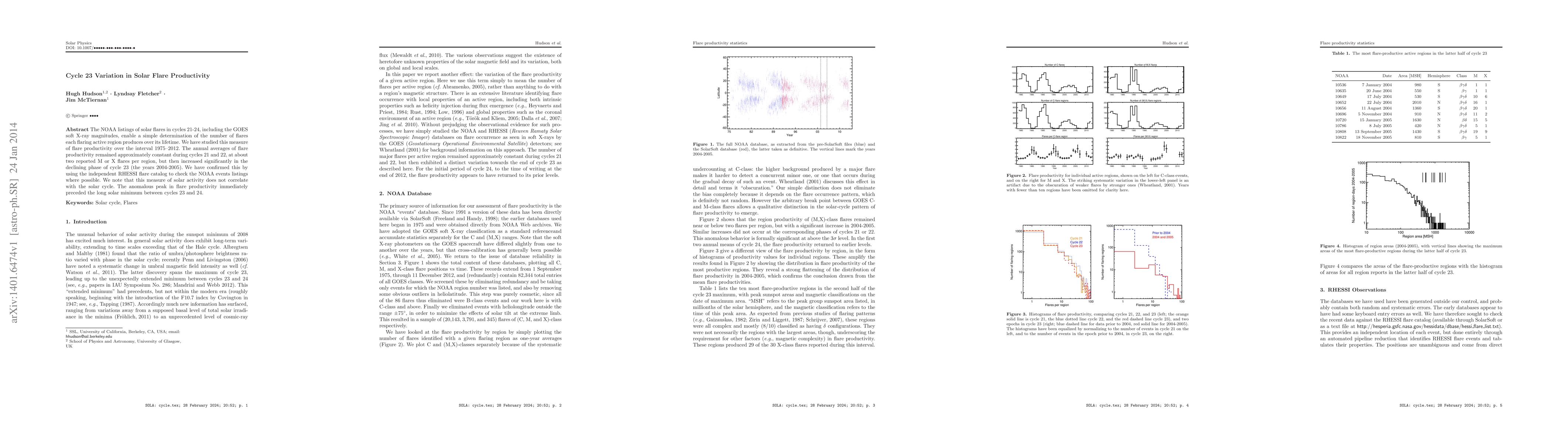 A study found that solar flare productivity increased significantly in 2004-2005 during cycle 23, just before a long solar minimum, contradicting the usual expectation of decreased activity at the end of a cycle.