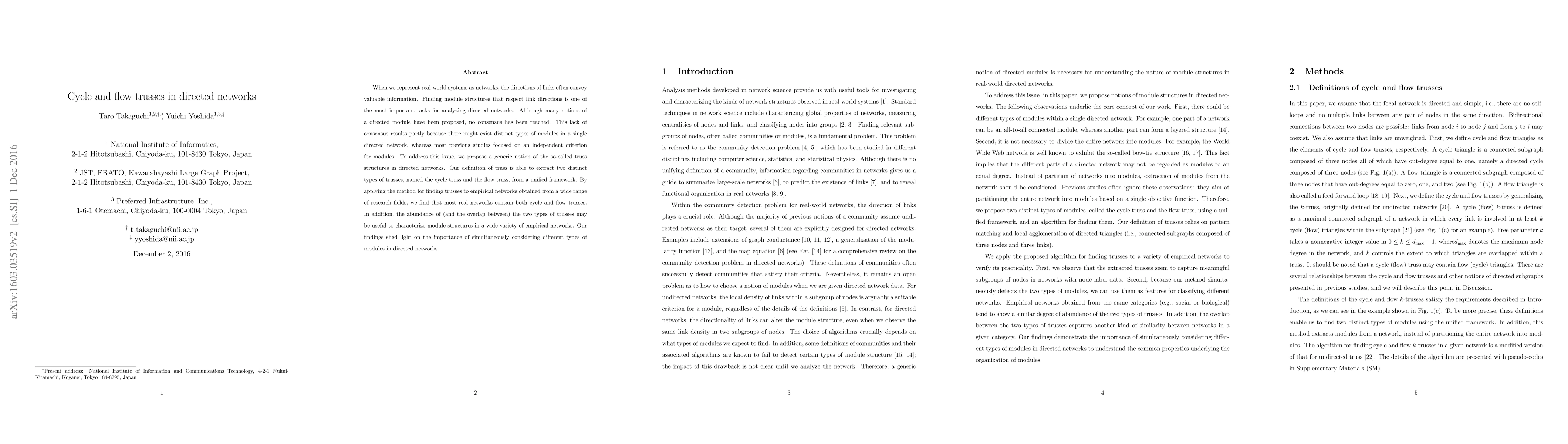 This paper proposes a unified framework to identify two distinct types of truss structures—cycle trusses and flow trusses—in directed networks, revealing that most real networks contain both. The findings highlight the importance of considering multiple types of modules to better understand module structures in directed networks.