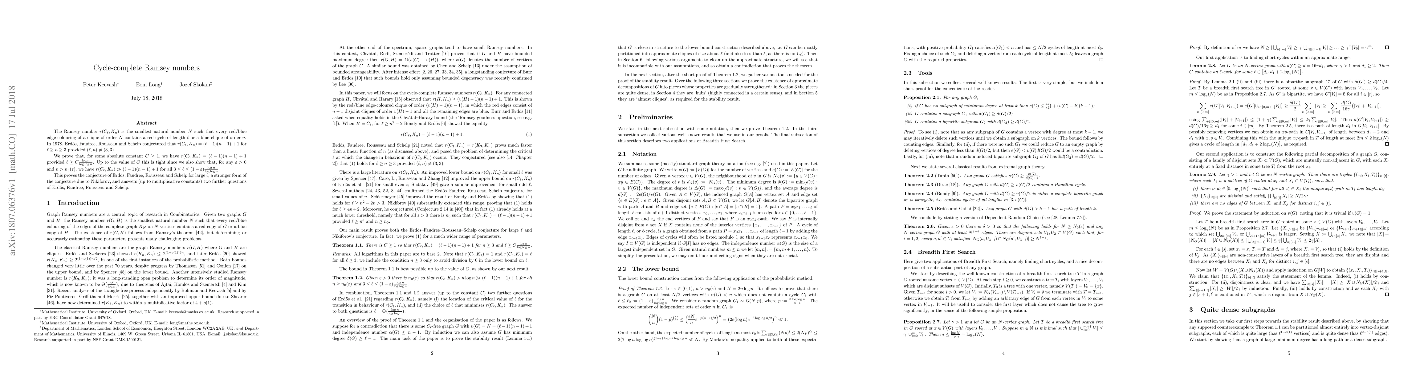 The Ramsey number $r(C_{\ell},K_n)$ is the smallest natural number $N$ such that every red/blue edge-colouring of a clique of order $N$ contains a red cycle of length $\ell$ or a blue clique of order $n$. In 1978, Erd\H{o}s, Faudree, Rousseau and Schelp conjectured that $r(C_{\ell},K_n) = (\ell-1)(n-1)+1$ for $\ell \geq n\geq 3$ provided $(\ell,n) \neq (3,3)$. We prove that, for some absolute constant $C\ge 1$, we have $r(C_{\ell},K_n) = (\ell-1)(n-1)+1$ provided $\ell \geq C\frac {\log n}{\log \log n}$. Up to the value of $C$ this is tight since we also show that, for any $\varepsilon >0$ and $n> n_0(\varepsilon )$, we have $r(C_{\ell }, K_n) \gg (\ell -1)(n-1)+1$ for all $3 \leq \ell \leq (1-\varepsilon )\frac {\log n}{\log \log n}$. This proves the conjecture of Erd\H{o}s, Faudree, Rousseau and Schelp for large $\ell $, a stronger form of the conjecture due to Nikiforov, and answers (up to multiplicative constants) two further questions of Erd\H{o}s, Faudree, Rousseau and Schelp.