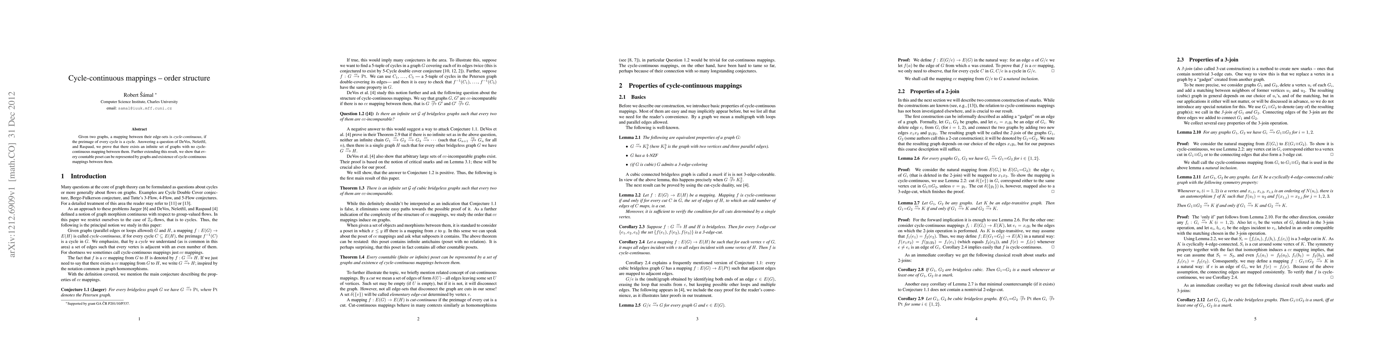 Given two graphs, a mapping between their edge-sets is cycle-continuous, if the preimage of every cycle is a cycle. The motivation for this notion is Jaeger's conjecture that for every bridgeless graph there is a cycle-continuous mapping to the Petersen graph. Answering a question of DeVos, Ne\v{s}et\v{r}il, and Raspaud, we prove that there exists an infinite set of graphs with no cycle-continuous mapping between them. Further extending this result, we show that every countable poset can be represented by graphs and existence of cycle-continuous mappings between them.