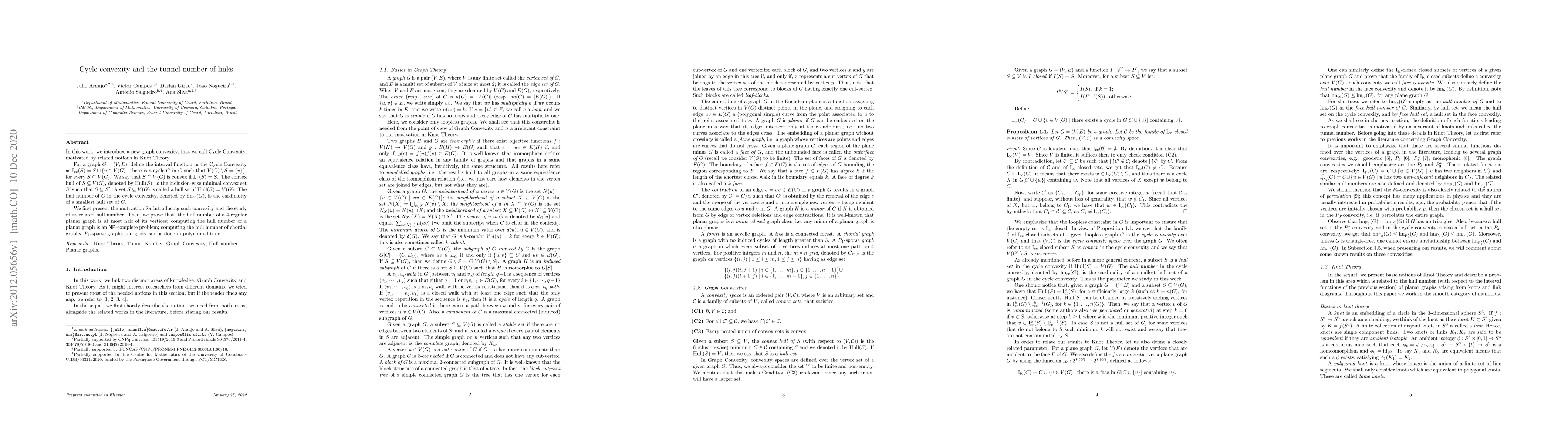 This paper introduces Cycle Convexity, a new graph convexity concept motivated by Knot Theory, and defines the hull number of a graph based on this convexity. It proves that the hull number of a 4-regular planar graph is at most half its vertices, computing the hull number for planar graphs is NP-complete, and it can be computed in polynomial time for chordal, $P_4$-sparse graphs, and grids.
