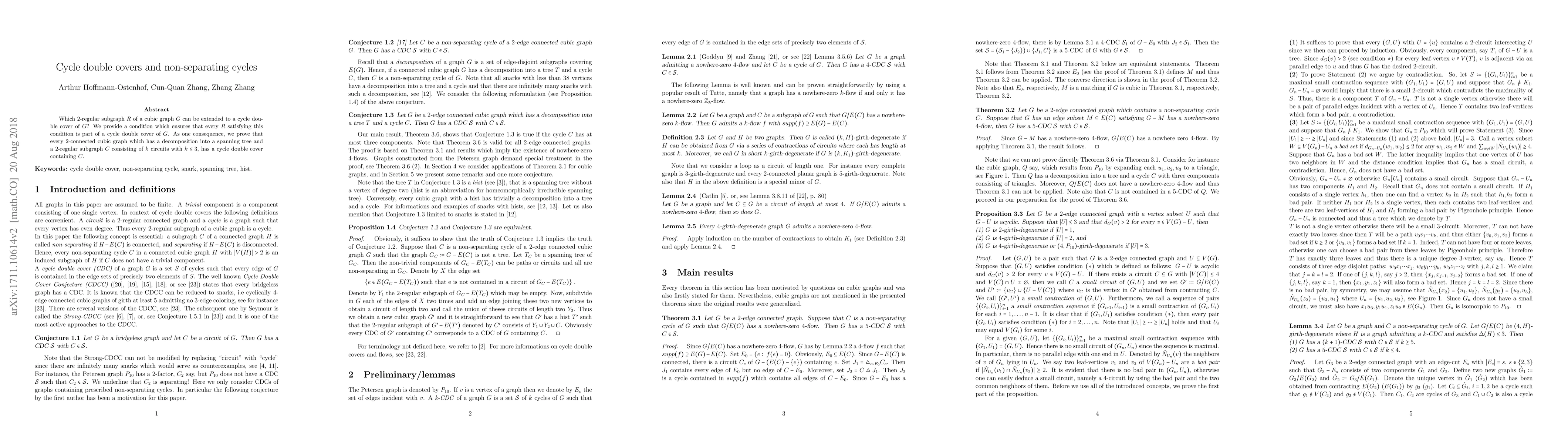This paper investigates conditions under which a $2$-regular subgraph $R$ of a cubic graph $G$ can be extended to a cycle double cover. It establishes a criterion ensuring that any $R$ meeting this condition is part of a cycle double cover, leading to the proof that $2$-connected cubic graphs with a specific decomposition into a spanning tree and a $2$-regular subgraph consisting of up to three circuits have a cycle double cover containing the subgraph.
