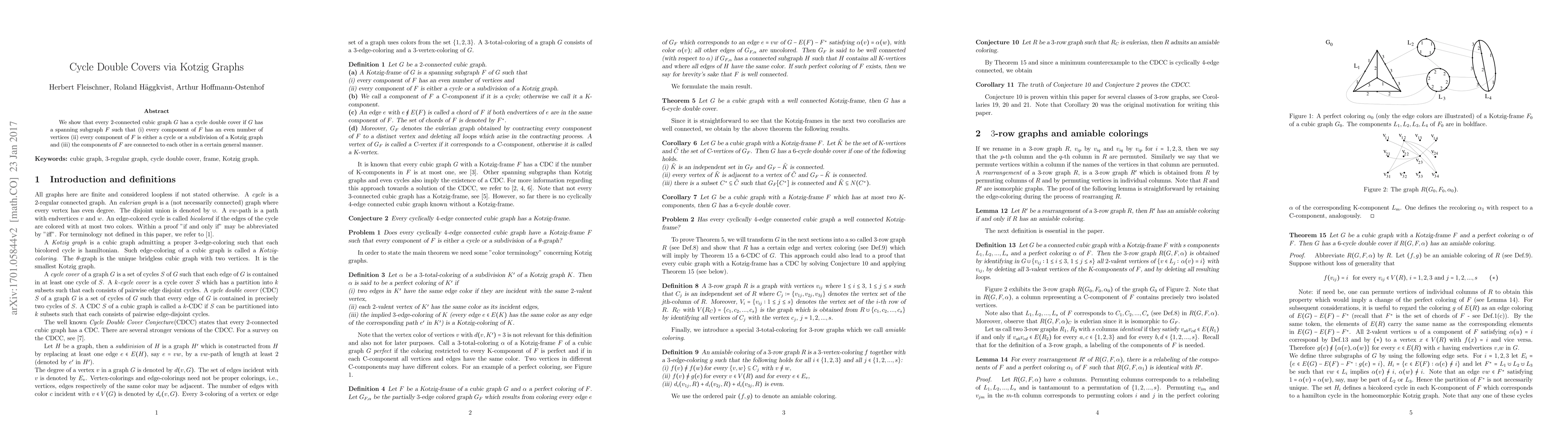 We show that every $2$-connected cubic graph $G$ has a cycle double cover if $G$ has a spanning subgraph $F$ such that (i) every component of $F$ has an even number of vertices (ii) every component of $F$ is either a cycle or a subdivision of a Kotzig graph and (iii) the components of $F$ are connected to each other in a certain general manner.