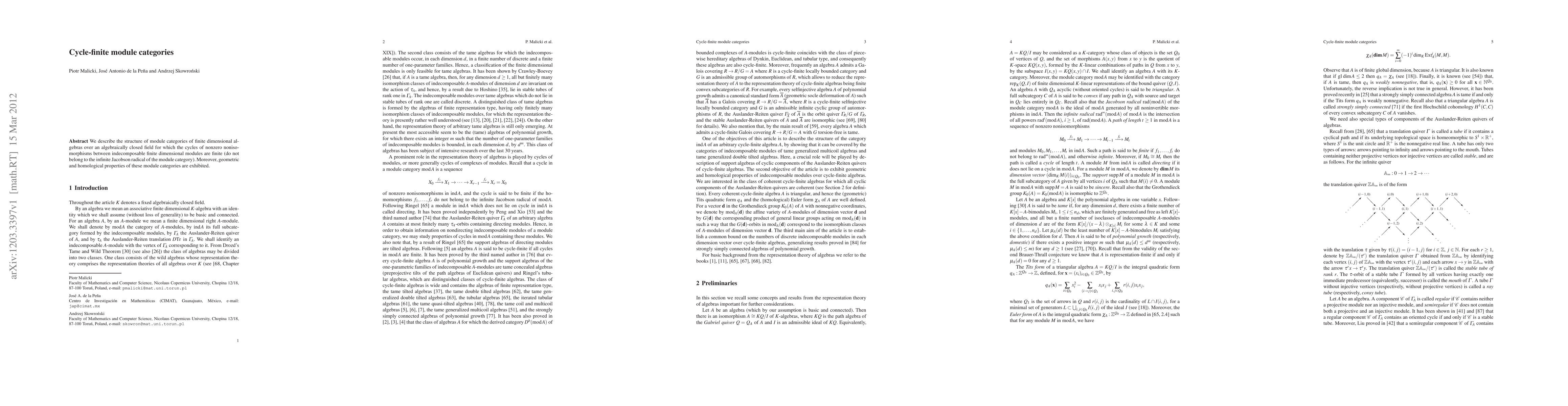 This paper explores module categories of finite dimensional algebras over an algebraically closed field with finite cycles of non-isomorphic indecomposable modules, showing geometric and homological properties.