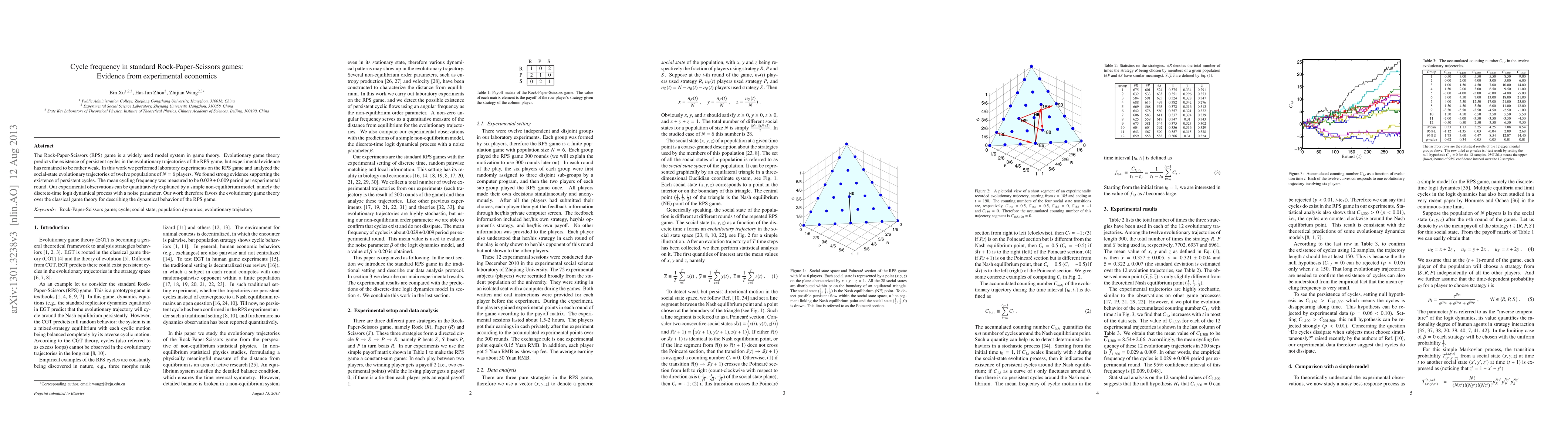 The Rock-Paper-Scissors (RPS) game is a widely used model system in game theory. Evolutionary game theory predicts the existence of persistent cycles in the evolutionary trajectories of the RPS game, but experimental evidence has remained to be rather weak. In this work we performed laboratory experiments on the RPS game and analyzed the social-state evolutionary trajectories of twelve populations of N=6 players. We found strong evidence supporting the existence of persistent cycles. The mean cycling frequency was measured to be $0.029 \pm 0.009$ period per experimental round. Our experimental observations can be quantitatively explained by a simple non-equilibrium model, namely the discrete-time logit dynamical process with a noise parameter. Our work therefore favors the evolutionary game theory over the classical game theory for describing the dynamical behavior of the RPS game.