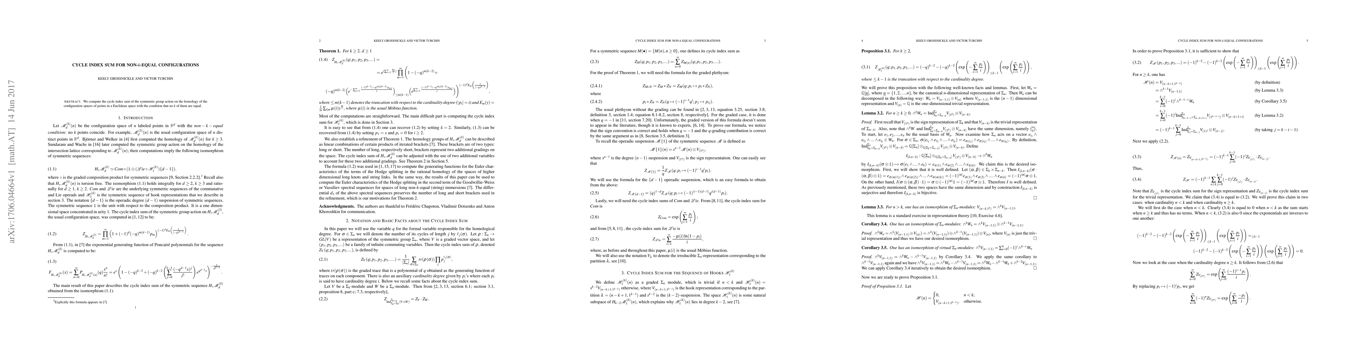 We compute the cycle index sum of the symmetric group action on the homology of the configuration spaces of points in a Euclidean space with the condition that no $k$ of them are equal.
