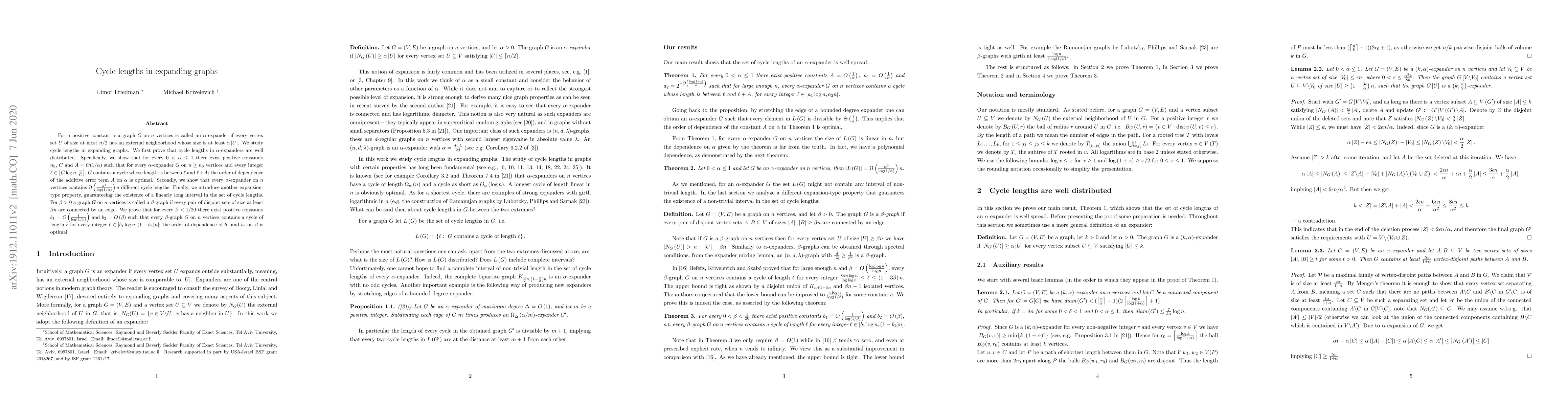 This paper investigates cycle lengths in expanding graphs, proving that cycle lengths in $\alpha$-expanders are well-distributed and contain a linearly long interval. It also demonstrates that $\beta$-graphs contain cycles of lengths within a specific range, with optimal dependence on parameters.