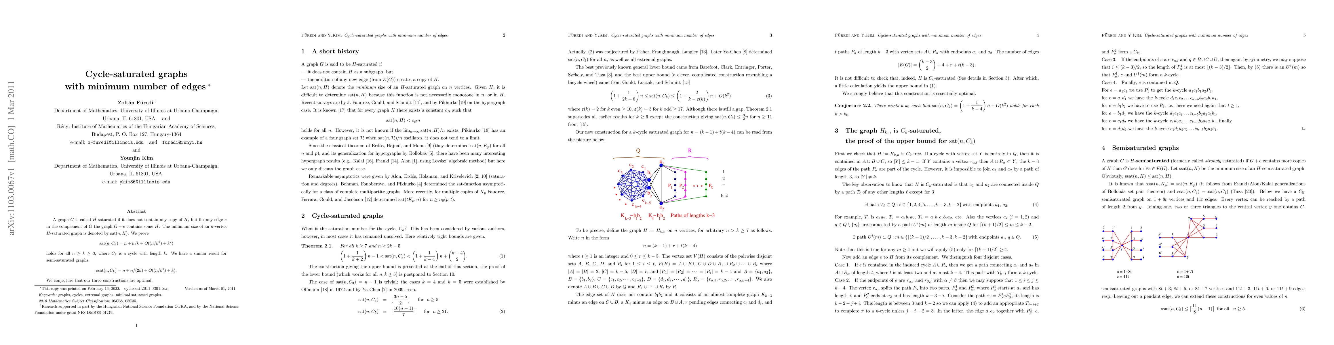This paper proves the minimum number of edges in $n$-vertex graphs that avoid cycles of length $k$ but become saturated when any edge is added, denoted $\sat(n,C_k)$, is $n + n/k + O((n/k^2) + k^2)$. It also provides a similar result for semi-saturated graphs, $\ssat(n,C_k) = n + n/(2k) + O((n/k^2) + k)$.